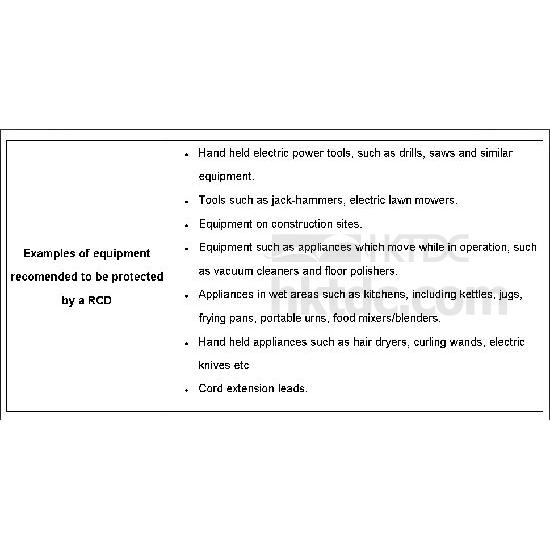 Appliances in wet areas such as kitchens, including kettles, jugs, frying pans, portable urns, food mixers/blenders.
