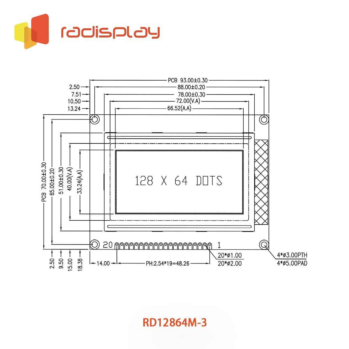 RD12864M-3 is widely used among 128x64 Graphic LCD displays.
