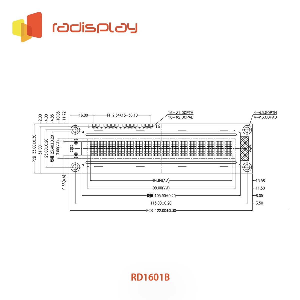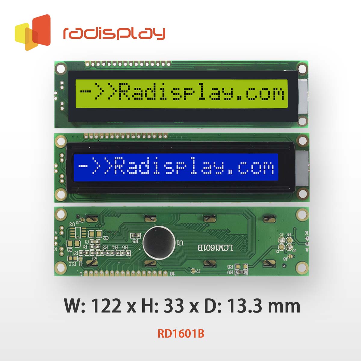 RD1601B offers large character size among 16x1 character LCD displays.