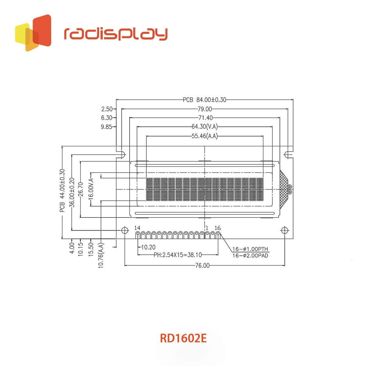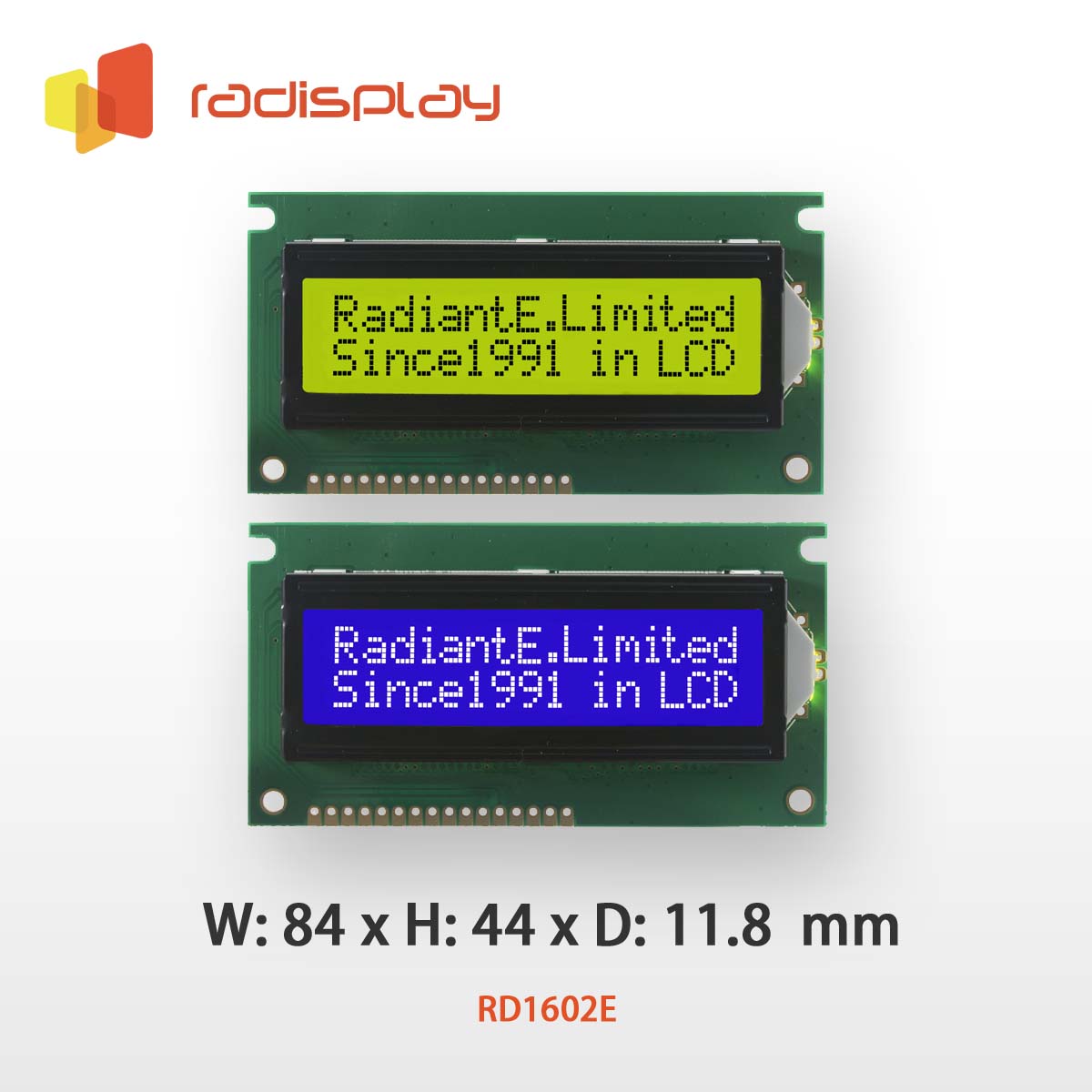 RD1602E is widely used among 16x2 Character LCD displays.
