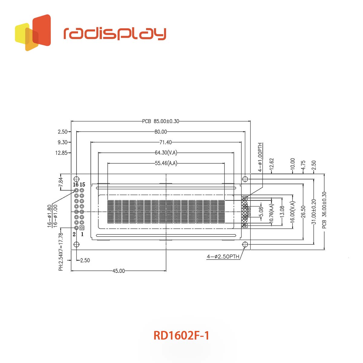 RD1602F-1 is widely used among 16x2 Character LCD displays.