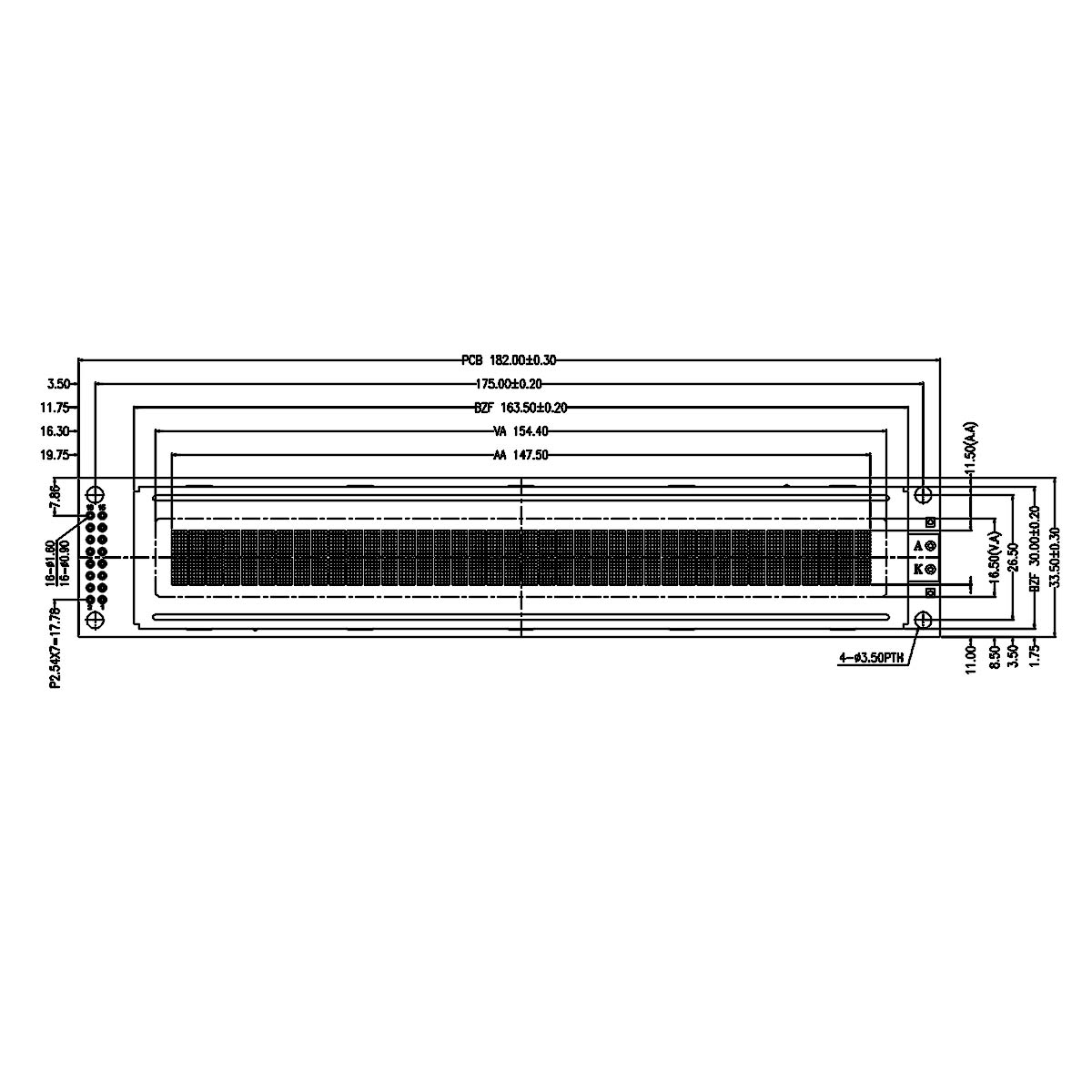 Viewing area (W x H) | 154.4 x 16.5 mm | |