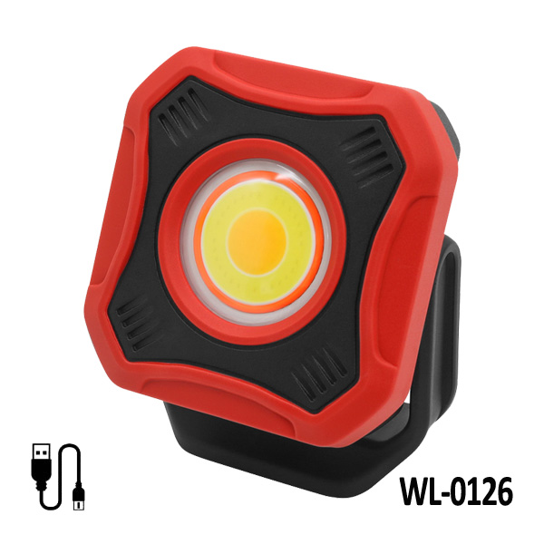Function: 5 modes: COB LED 6500K On, COB LED (6500K+2700K) On, COB LED 2700K On and COB LED In Red On, COB LED In RED flashing. *180° rotation stand;