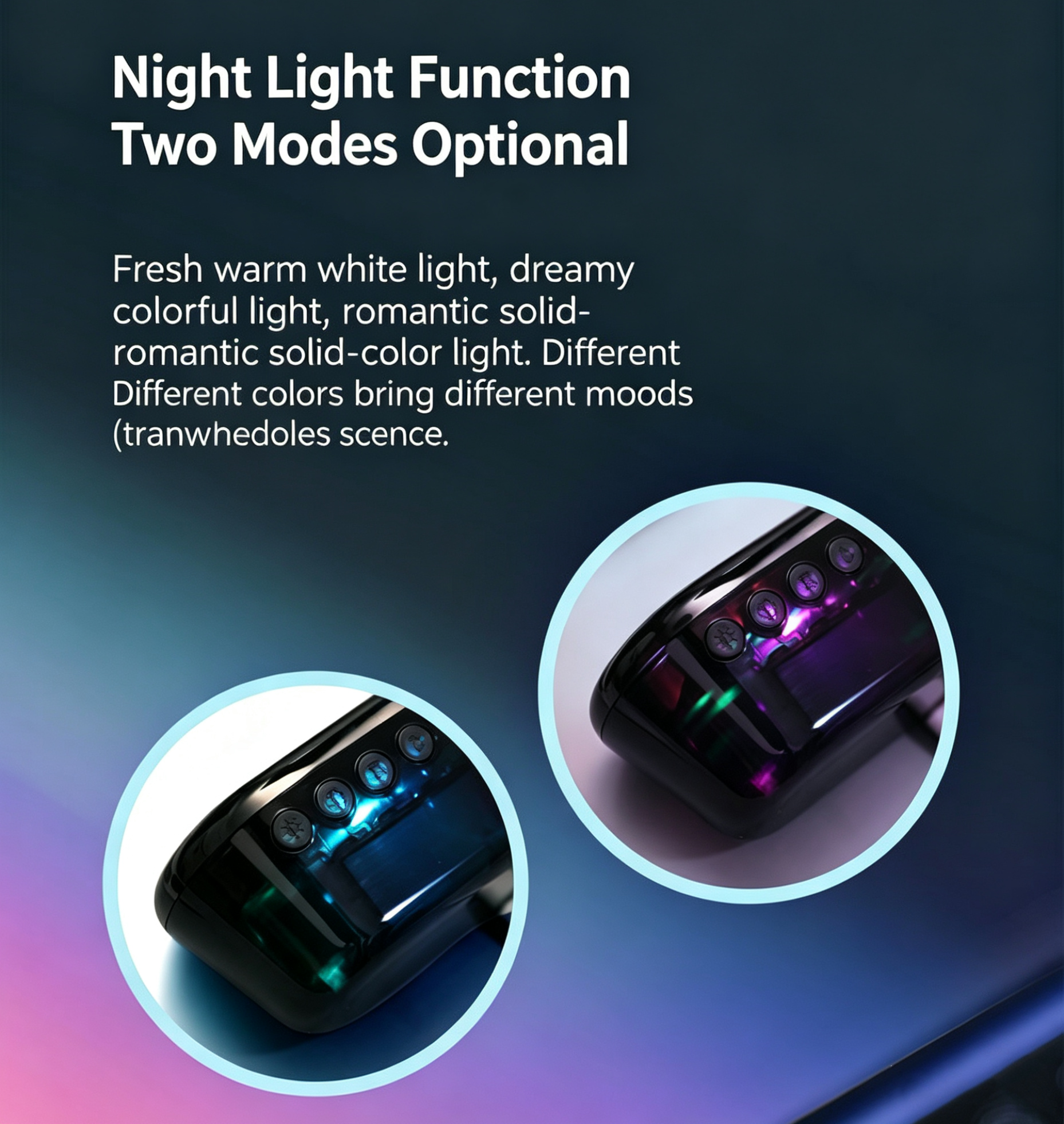 - Night Light Mode: Switch between warm white light and colorful ambient light to create a cozy and relaxing atmosphere.