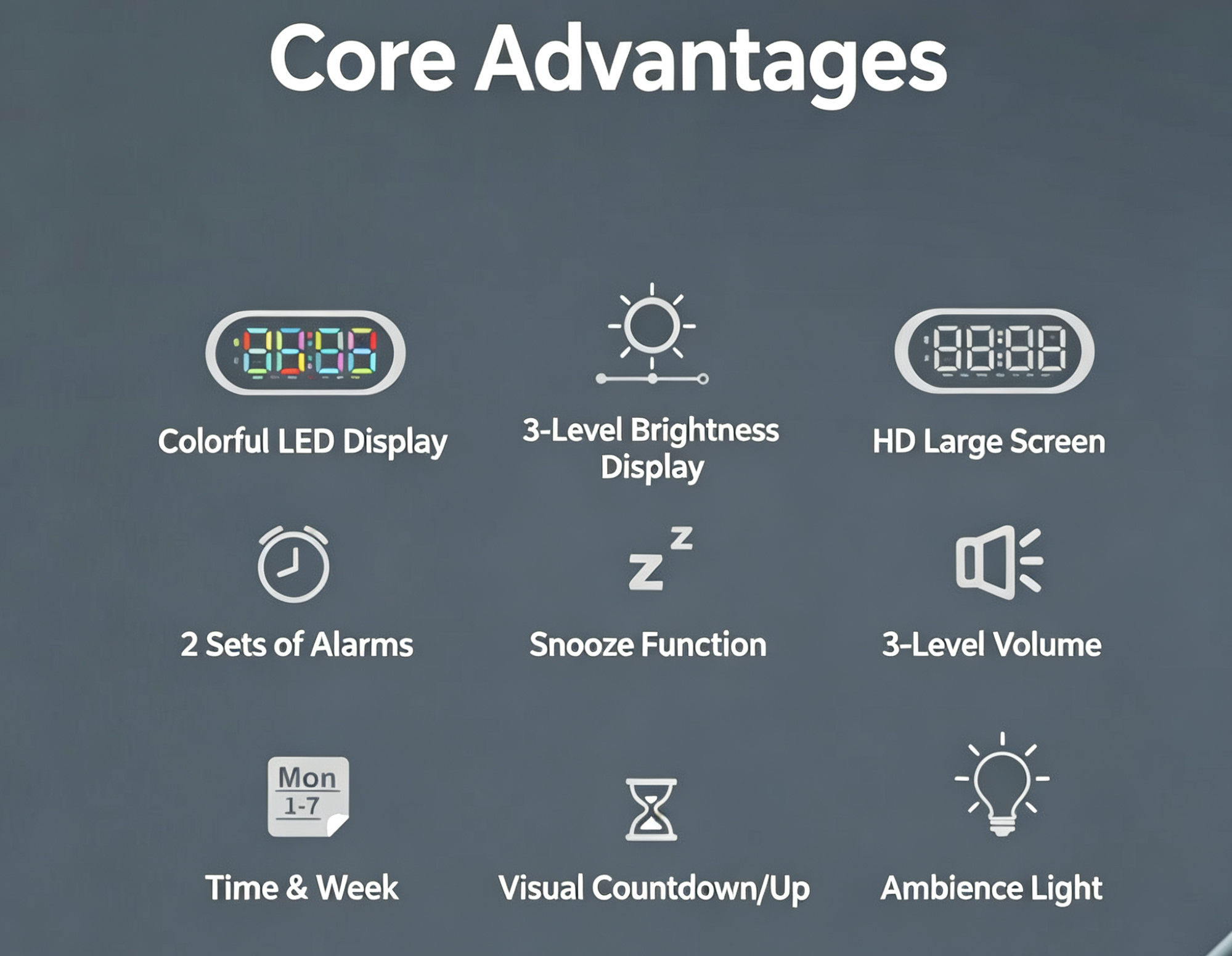 - 3-Level Brightness & Volume Adjustment: Customize the display brightness and alarm volume to your preference, ensuring comfort day and night.