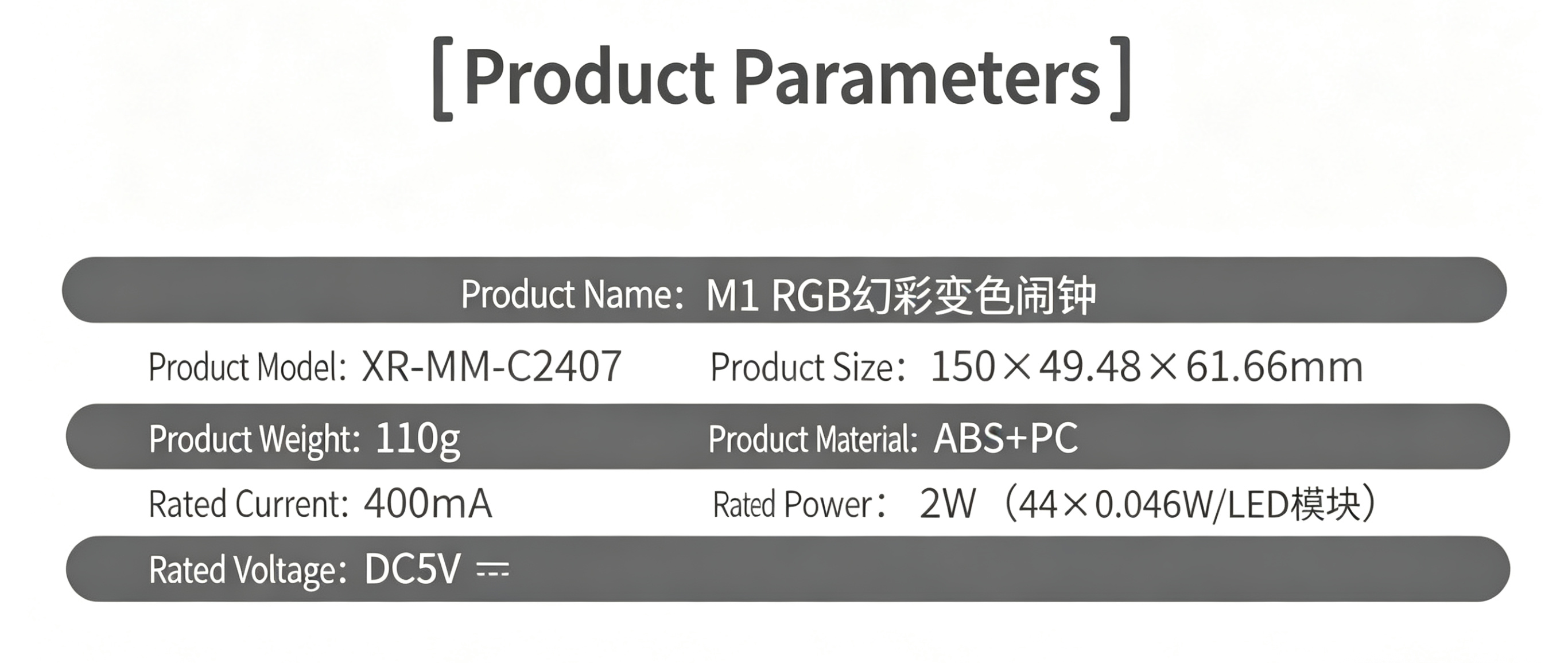 - Product Name: M1 RGB Color Changing Alarm Clock