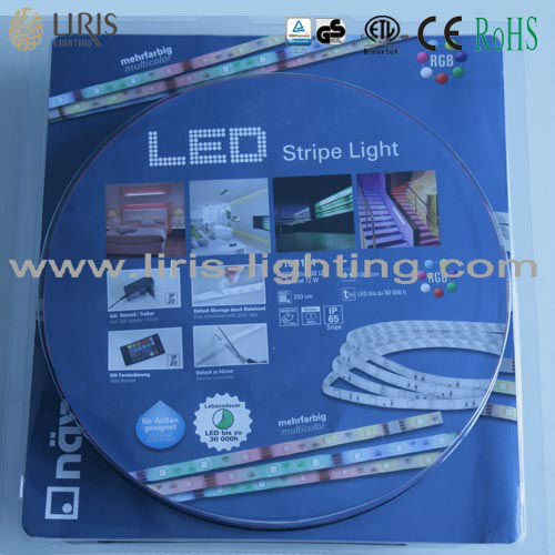 This is the LED strip for retail, it is very popular in the market, it sells well in Europe such as Germany and so on. Single color: Item No.: BY-FS-5050-RGB-SET Color: RGB Packing include: 1x5meter LED strip(3528); 1x transformer(I/P: 100-240VAC, O/P: 12VDC, 24W); 1x power cable with DC socket. LEDs/unit: 3 LEDs/m: 60 Viewing Angle: 120° Power(W): 24 Packing: 5meter/reel/bag RGB Color Item No.: BY-FS-5050-RGB-5M-SET1 Color: RGB Packing include: 1x5meter LED strip(5050-RGB); 1x transformer(I/P: 100-240VAC, O/P: 12VDC, 36W); 1x RGB Controller with Remote(72W) LEDs/unit: 3 LEDs/m: 30 Viewing Angle: 120° Power(W): 30 Packing: 5meter/reel/bag