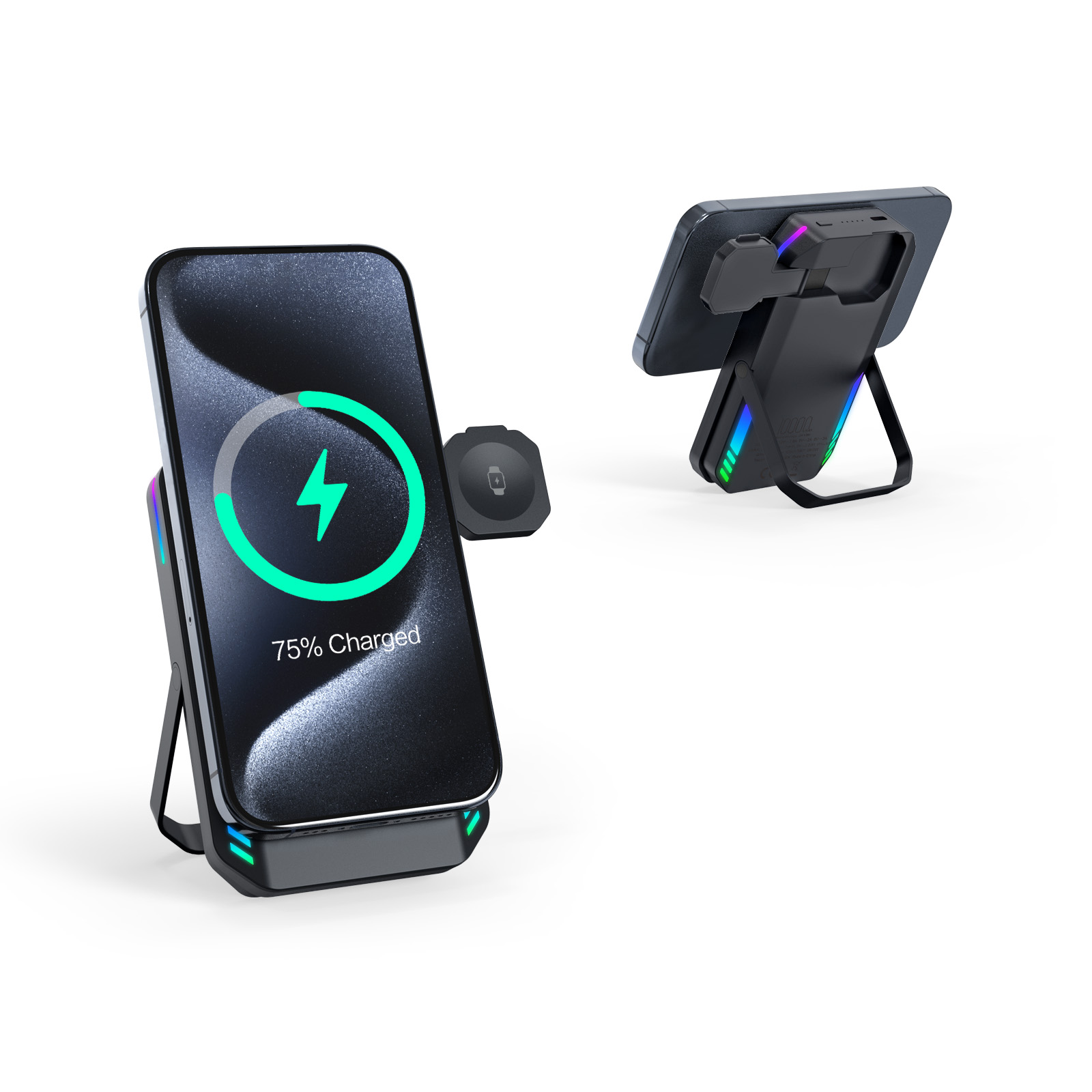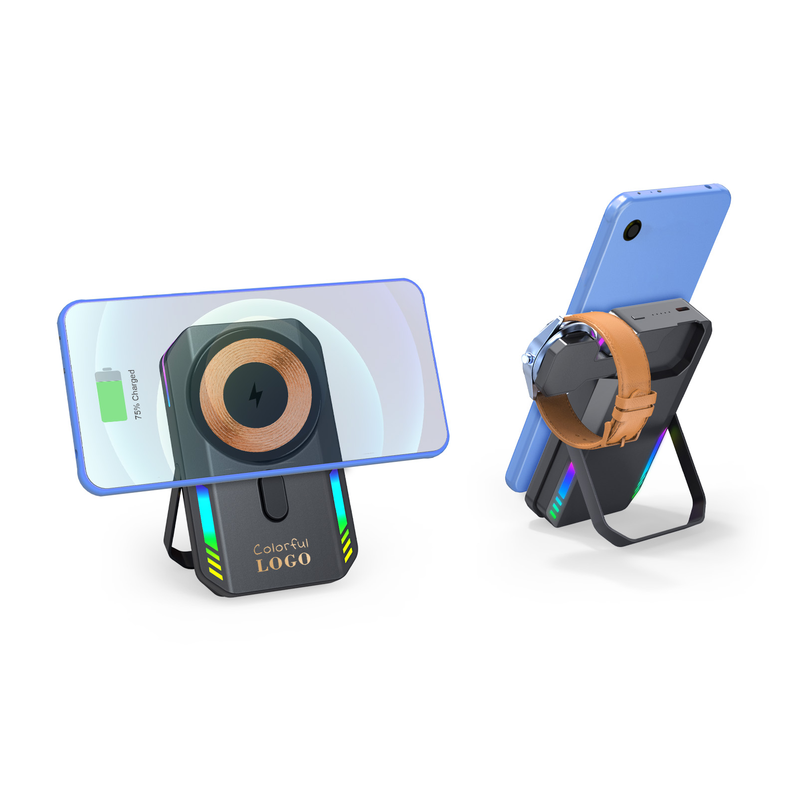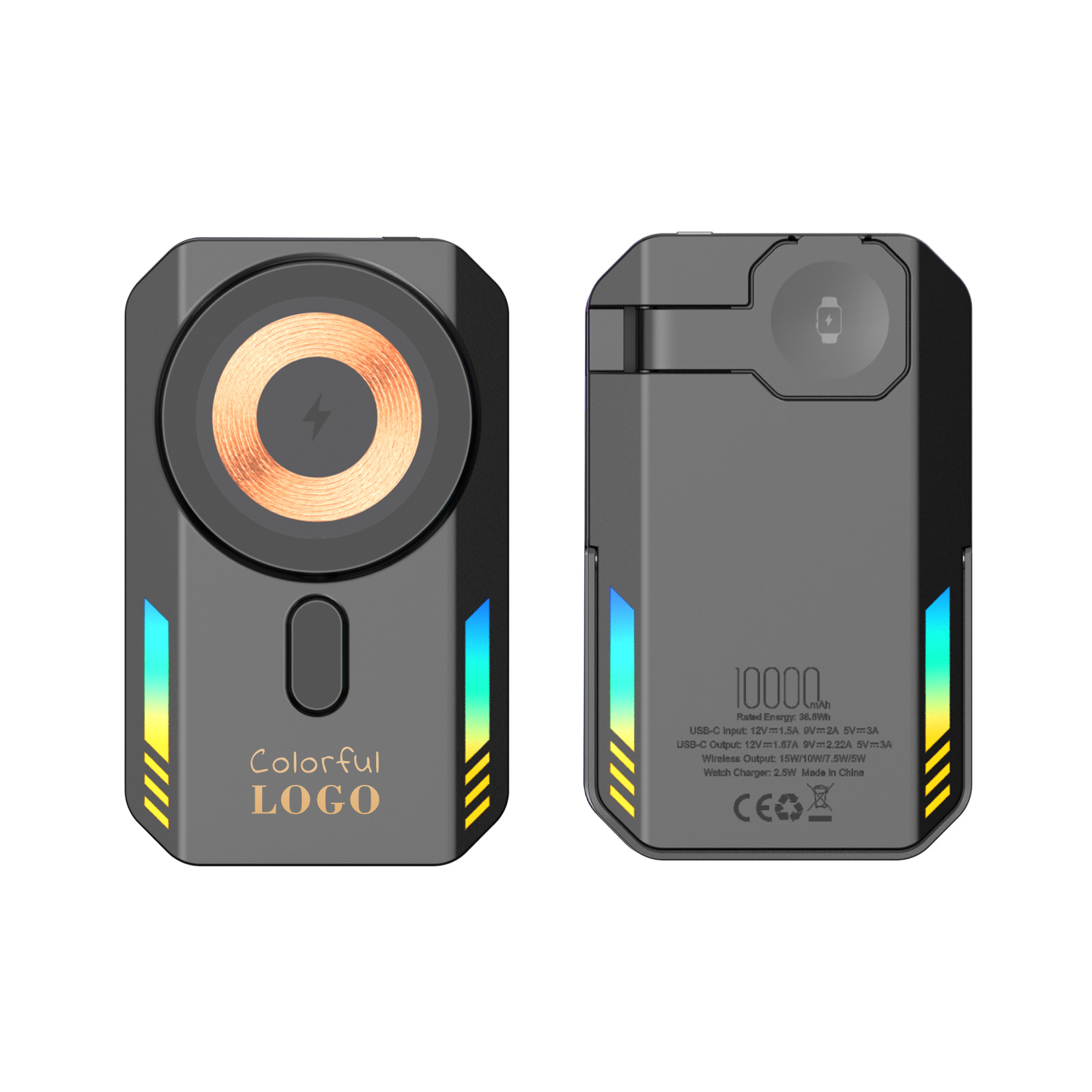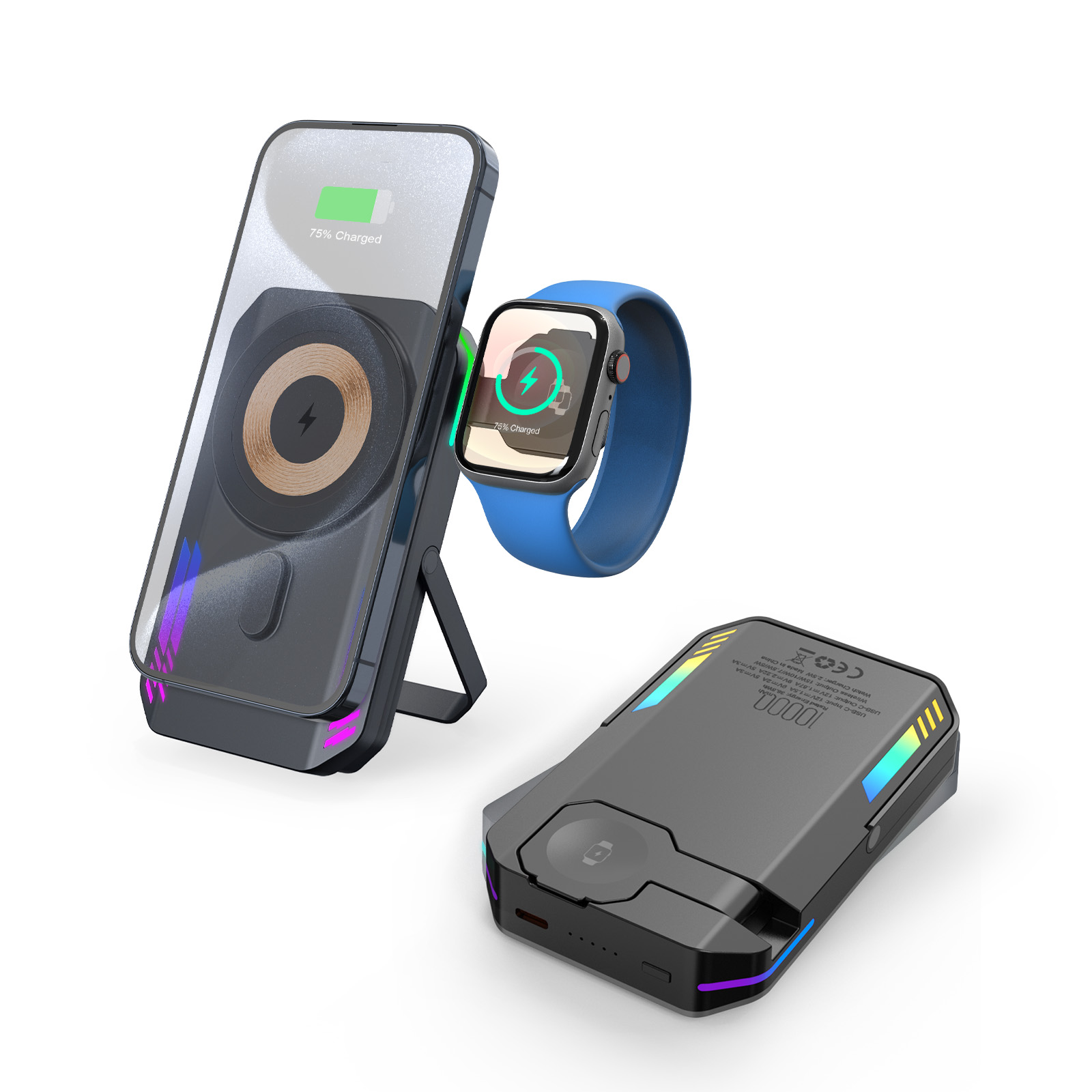 RGB Light Wireless Charger Power Bank 10000mah For Watch Phone Stand Magnetic Power Bank