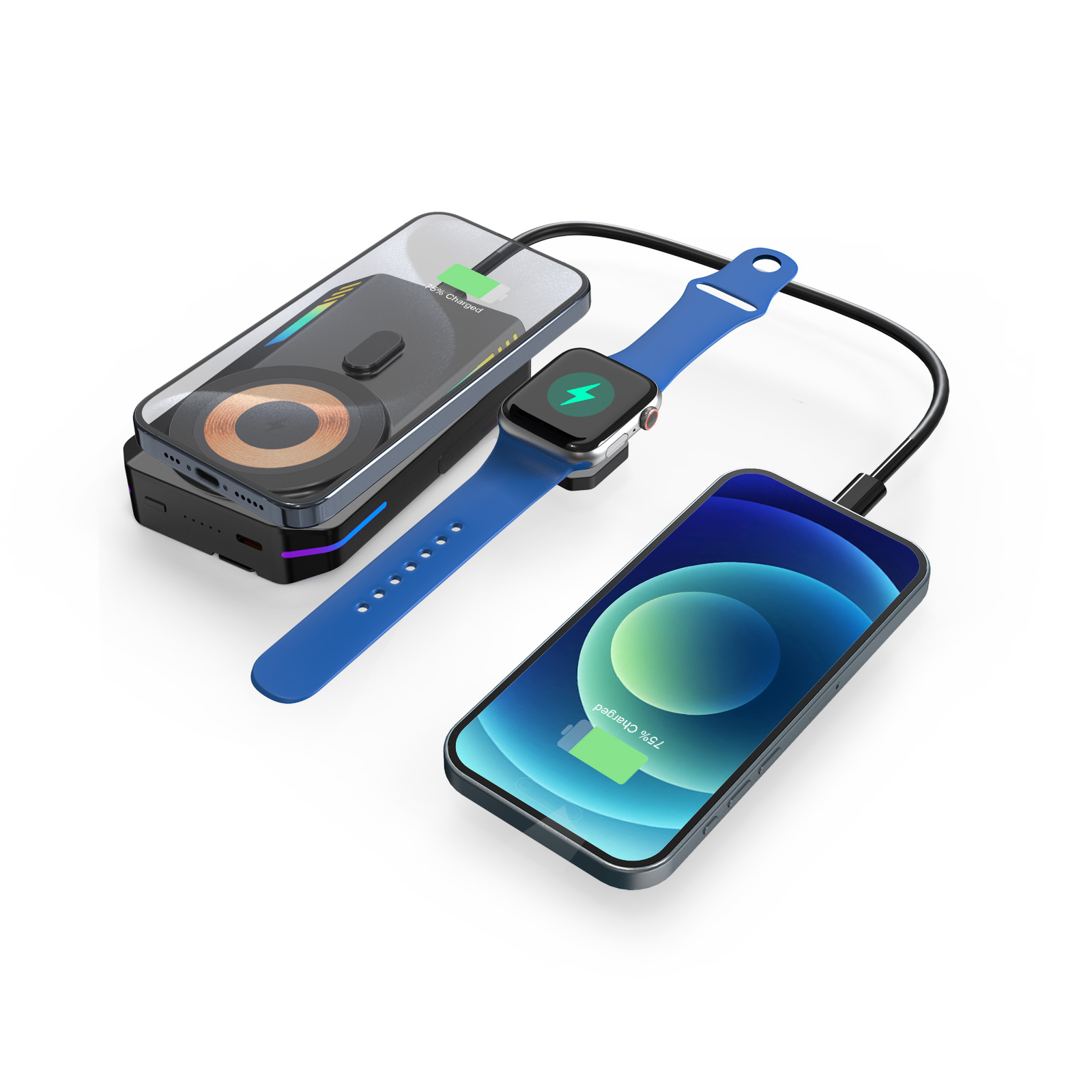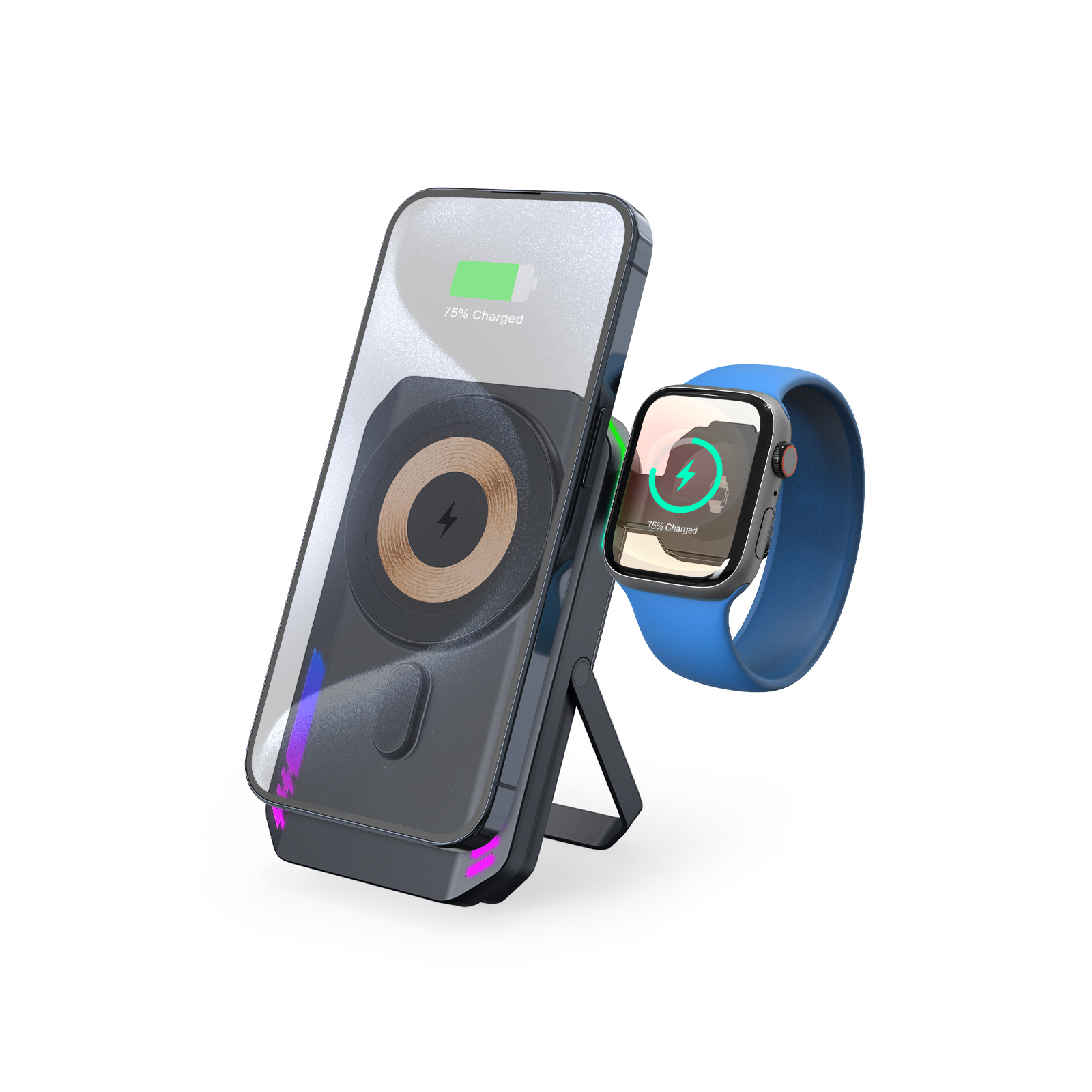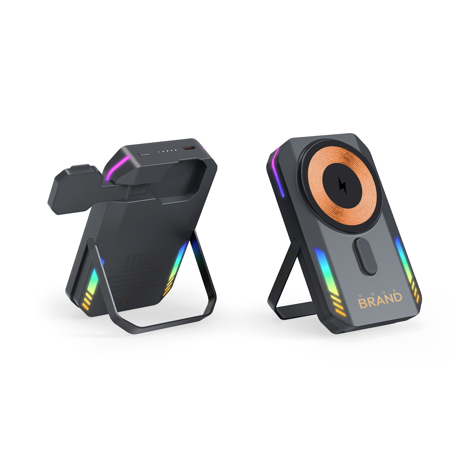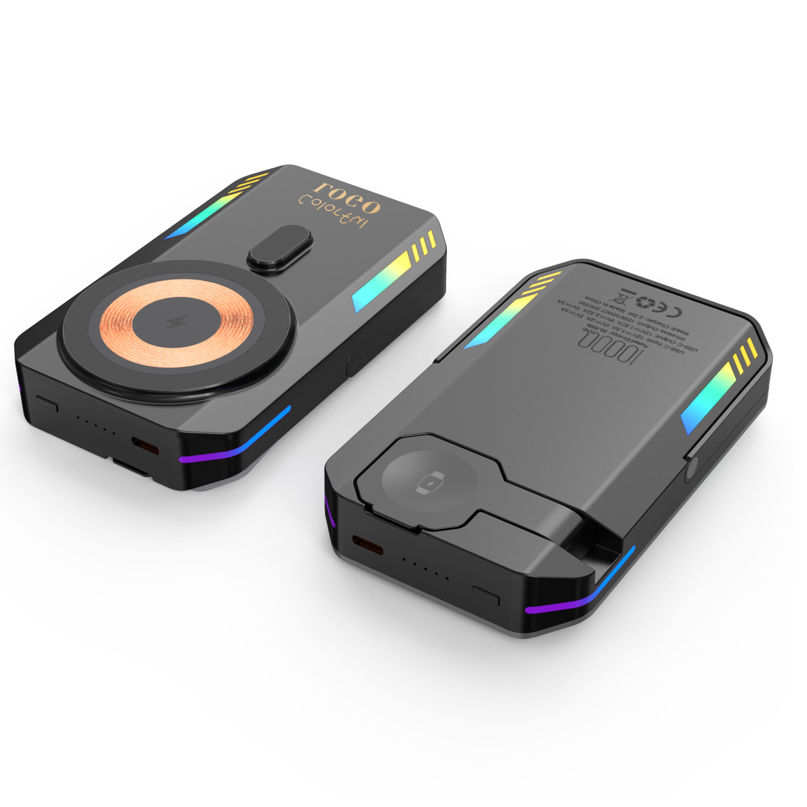 RGB Light Wireless Charger Power Bank 10000mah For Watch Phone Stand Magnetic Power Bank