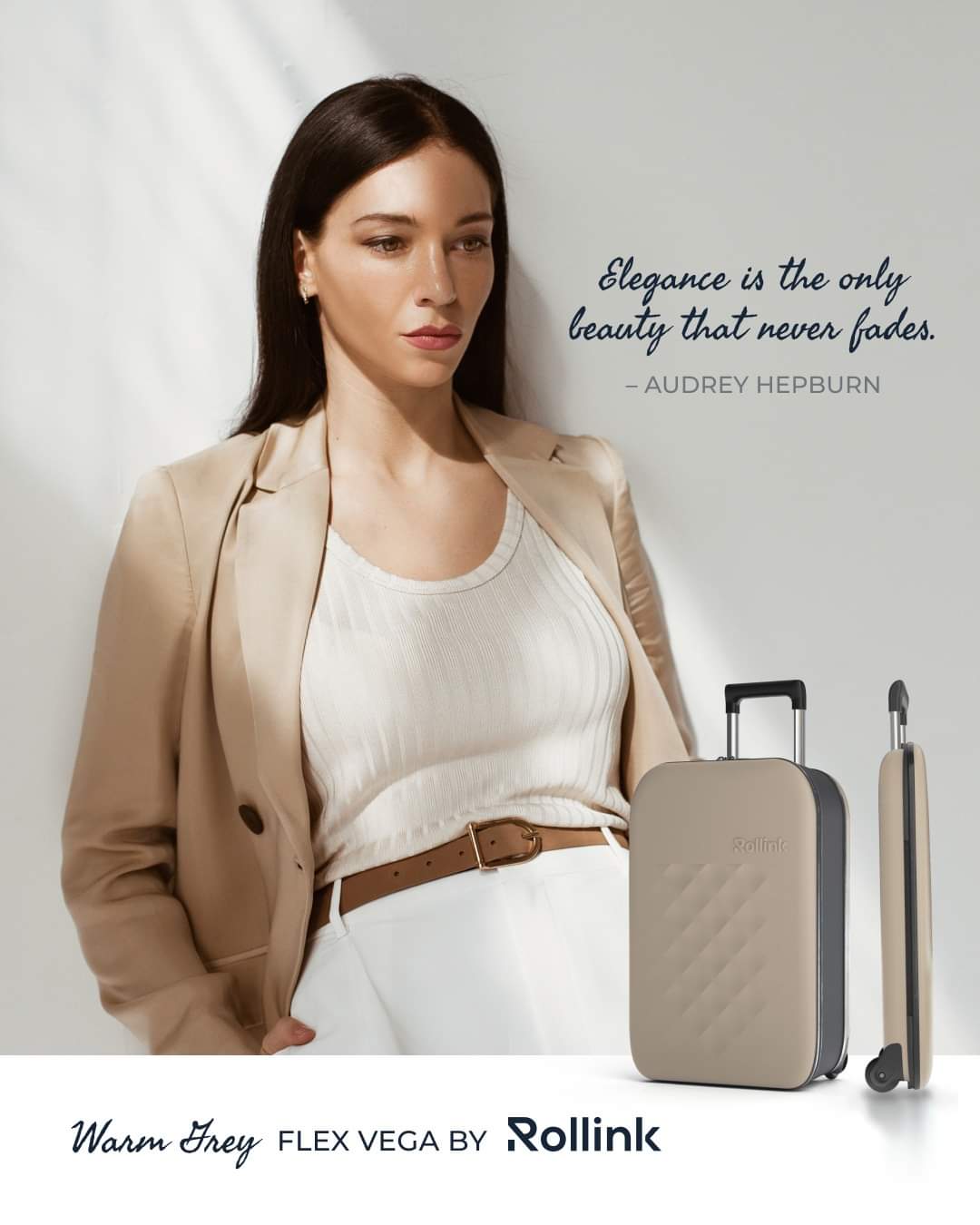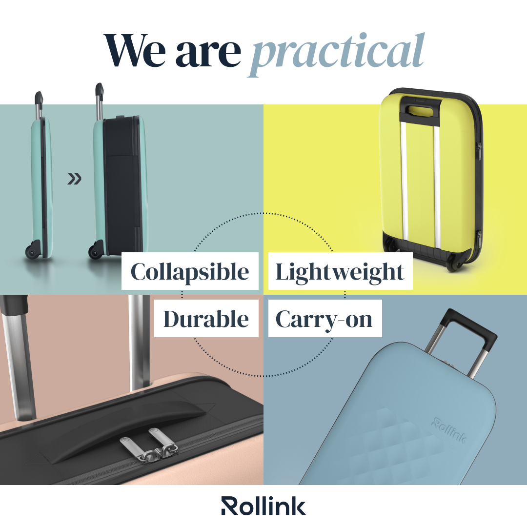 Patent design ROLLINK Flex 21 Collapsible CARRY-ON Suitcase [VEGA II] is the World's Slimmest CARRY-ON Suitcase, it can be folded into ONLY 6cm thick and 2.3kgs weight, can be packed into a larger size luggage for Shopping, extra carry-on suitcase for all your souvenirs.