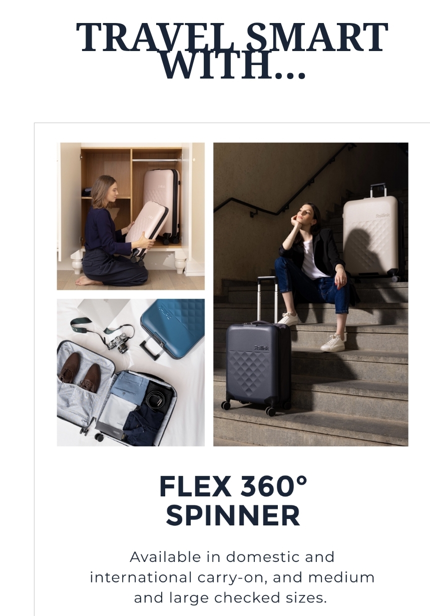 ROLLINK Flex 4- Wheel Spinner [VEGA 360] is as stylish as it is practical, made to last and designed to fit your lifestyle. All ROLLINK collapsible luggage pieces fold flat to be slimmest, taking up minimum space in your home, hotel room, or vacation rental.