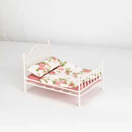 This iron bed provides a comfortable resting space for children's dolls with its sturdy structure and elegant lines.