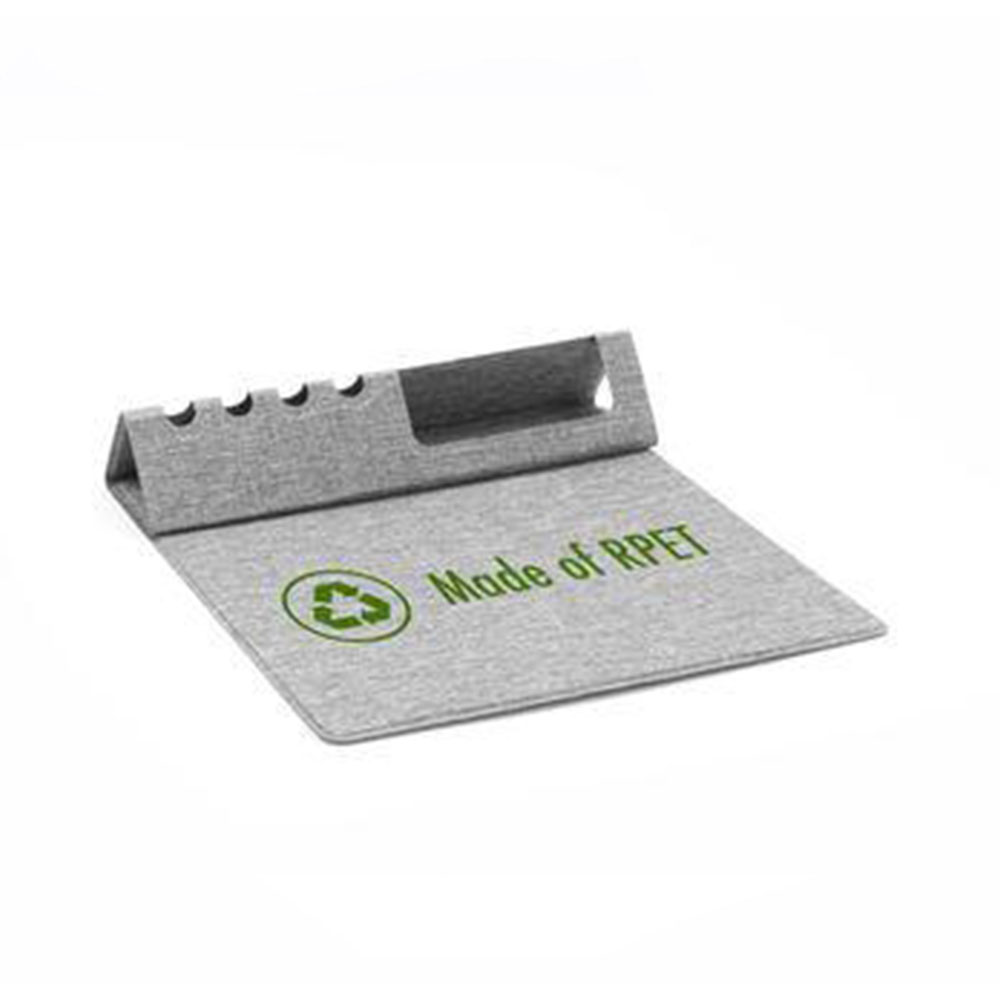 Evopad Eco is the perfect sustainable corporate gift to work from anywhere. Reinvent your workspace with Evopad! Made from RPET this multi-function portable desktop tool is a Mouse Pad, Phone Holder and Pen Holder.