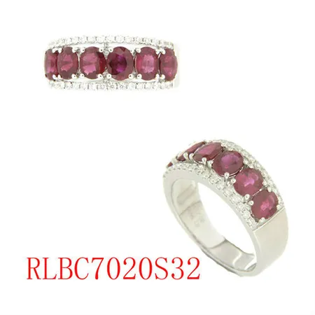 • 6 oval cut ruby-2.380CTS, 32D-0.253CTS, 18K white gold-5.01G