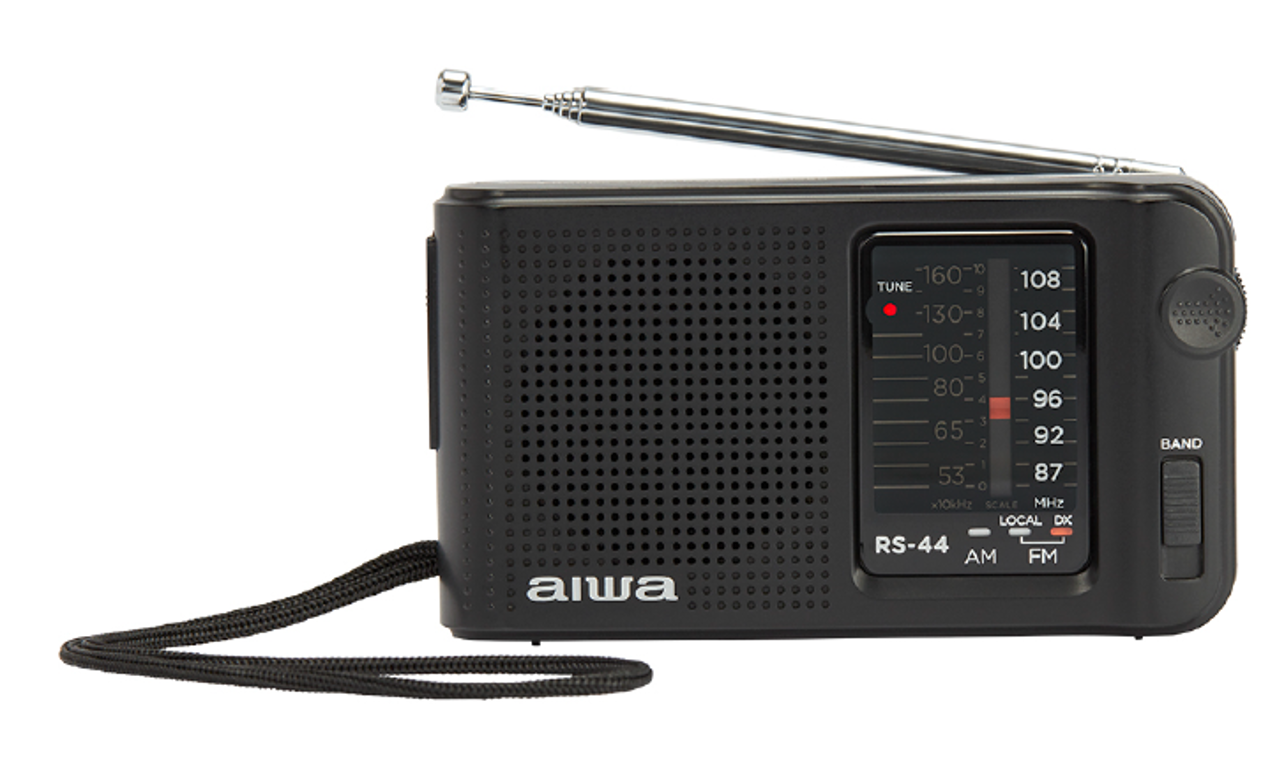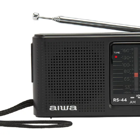 Pocket radio with a nostalgic design, AM/FM stereo, and high-quality dynamic speaker. Features include an easy-tuning analog system, FM DX function, headphone jack, and includes in-ear headphones, batteries, and a pouch.
