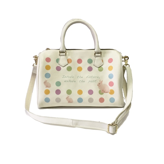 Be chic around the clock with this never-fail Boston handbag. This bag bestows charm and cuteness with the rabbit and multi-colored dot pattern imprinted in the front. Made out of fine leather, this bag is not only appealing but also tough to use.