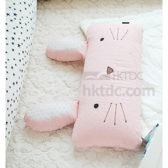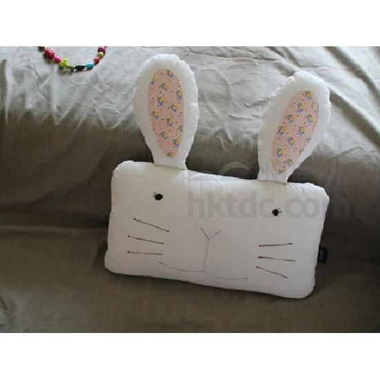 The ear parts of a pillow are filled with cotton, and being blocked.
