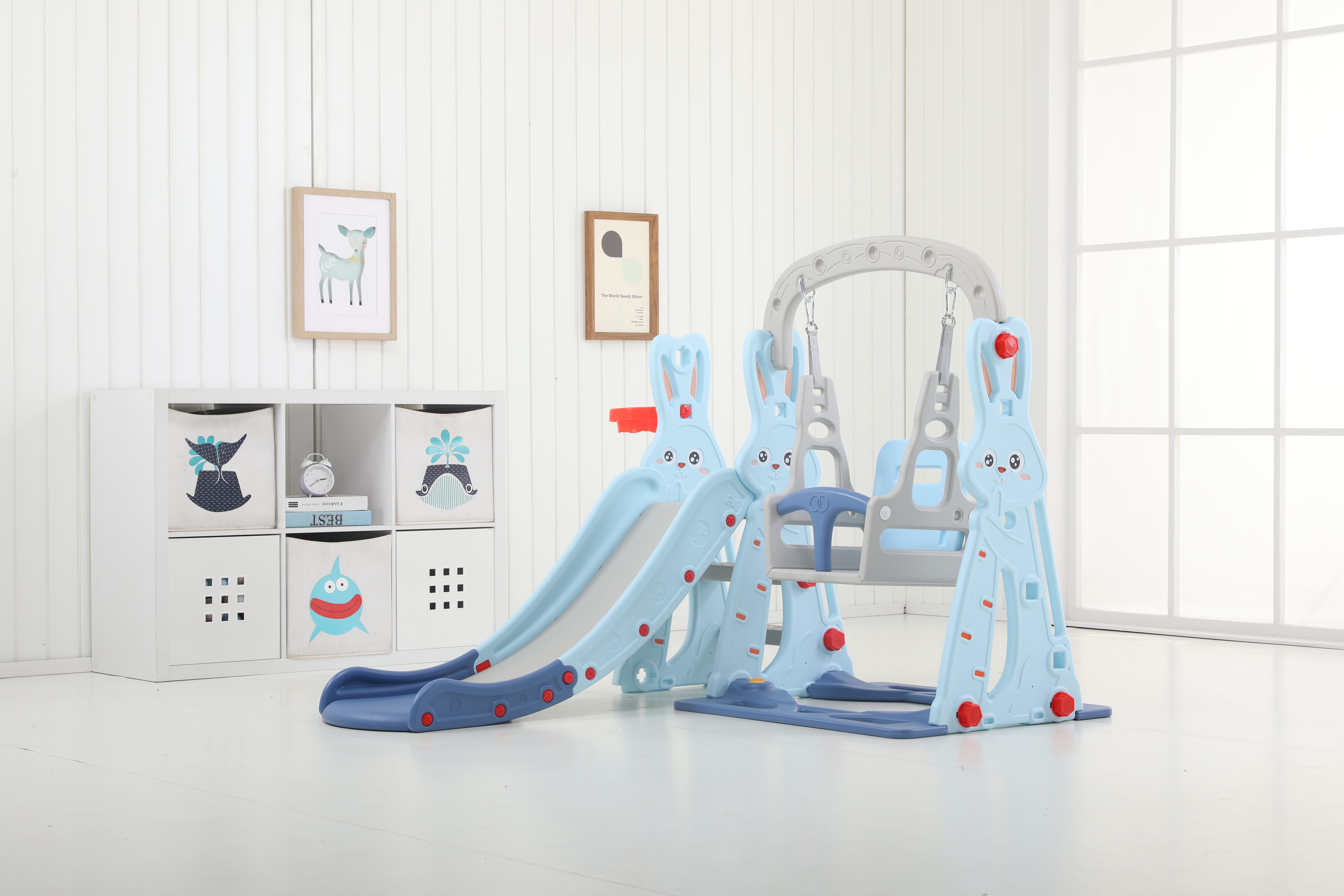 Rabbit/Plane theme kids lovely hot selling cheaper indoor plastic slide and swing set