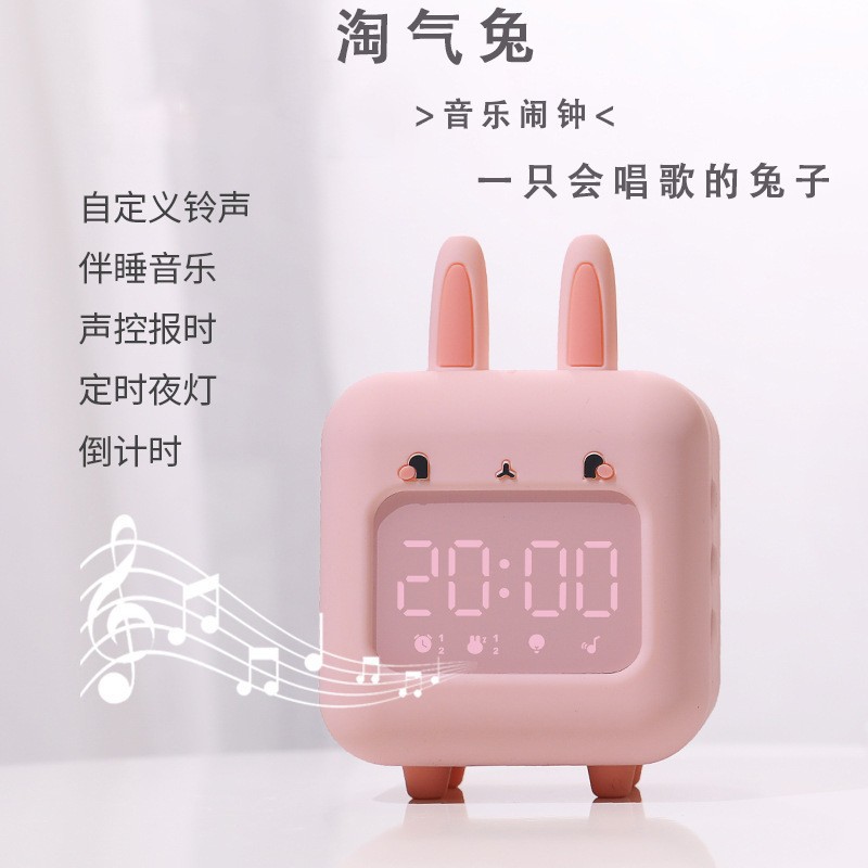 Rabbit clock night light USB rechargeable alarm clock and night light with warm white