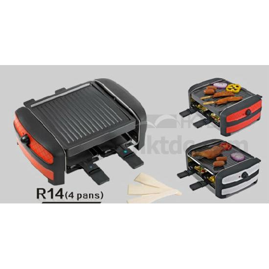 This raclette cooking set comes with 4 raclette pans and a tray. This set is manufactured under strict QC to ensure high quality. This raclette cooking set is ideal for household use.