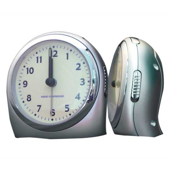 This silver-toned radio-controlled analog clock boasts a sturdy construction. The dial boasts Arabic-numeral hour markers with a stylish design.