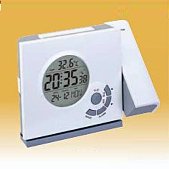 The advanced desk clock features a flattering time-projection function for clear and stylish time indication. It also comprises a round digital display at the center which shows time, date, temperature and other parameters. It is synchronized by radio signals to give accurate time.