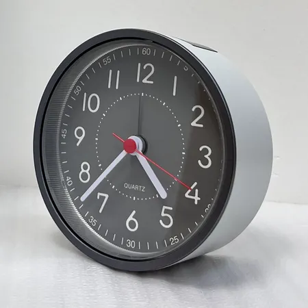 Radio controlled clock with 4-step beep alarm, switchable power saving mode, snooze & light.