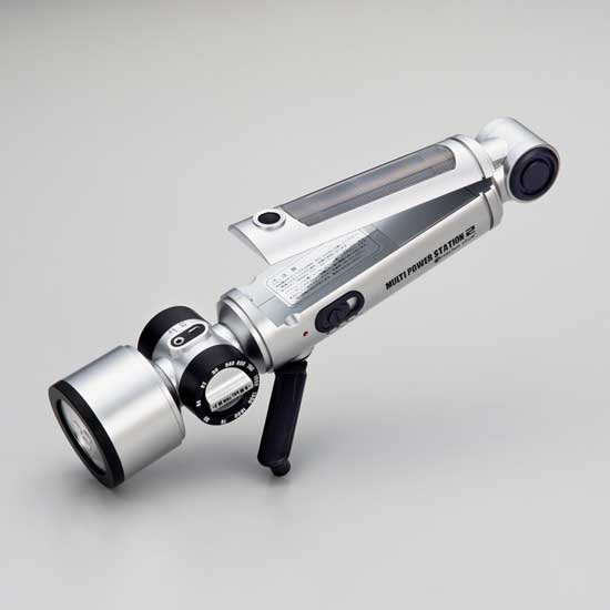This well-designed flashlight appears in the shape of a space station. The piece features a quality built-in radio for added functionality. The versatile flashlight can be powered in 4 different ways, making it a helpful tool in emergency situations.