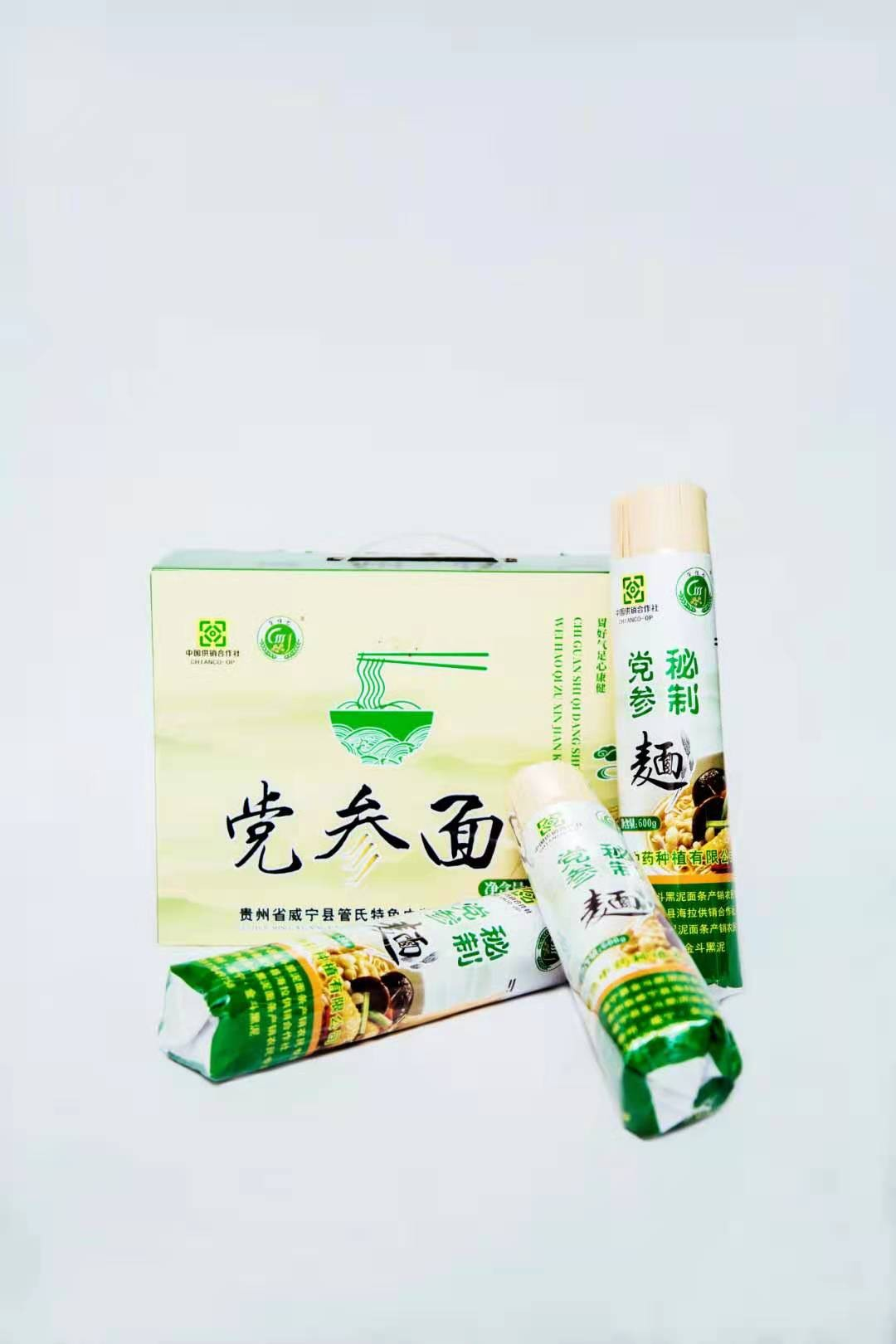 本品由贺剌党参(贺剌黄党参自清代起就被《阳府纪》记载为优质党参,其中渭宁因其易溶解、无残留而为佳。渭宁党人参的特点是其外形似头、豹尾、菊花心,味道浓郁,香气浓郁,含量高。它在 1970 年代被列为豁免出口产品进行检验)和优质细粉,质地如丝般光滑,食用时既柔软又有嚼劲。