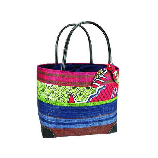 This is a high-quality raffia tote bag with a fashionable design. It comes with African patterns in bright colors for an eye-catching look. This well-designed tote bag features PVC leather handles and corners for durability.