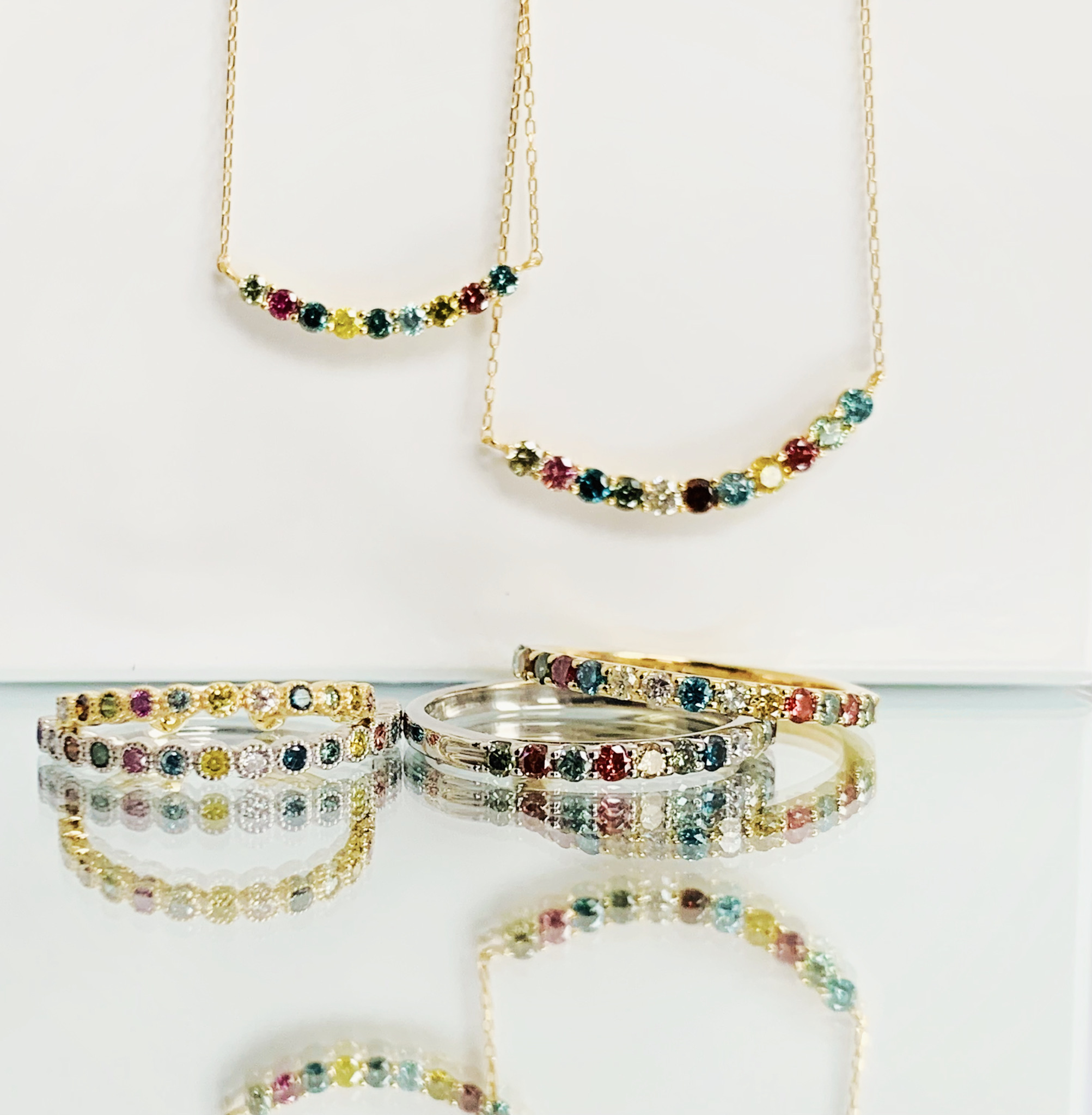 Treated color diamonds with heat. Rainbow collection with unique color variations