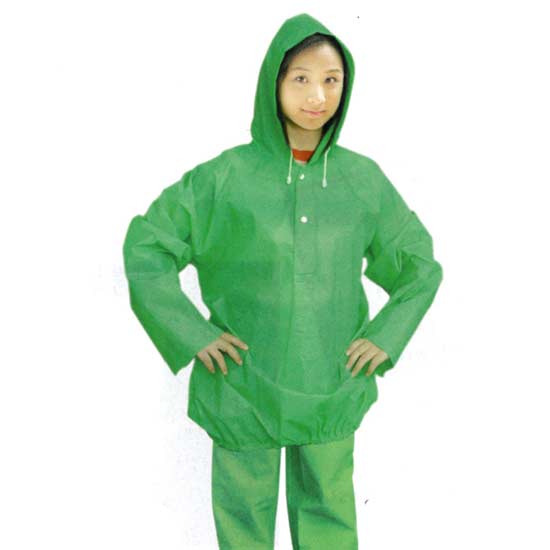 The set includes a raincoat and a pair of pants in a loose-fitting design. The lightweight plastic raincoat set protects you from chilly rain. Get ready for a rainy day with this raincoat set.