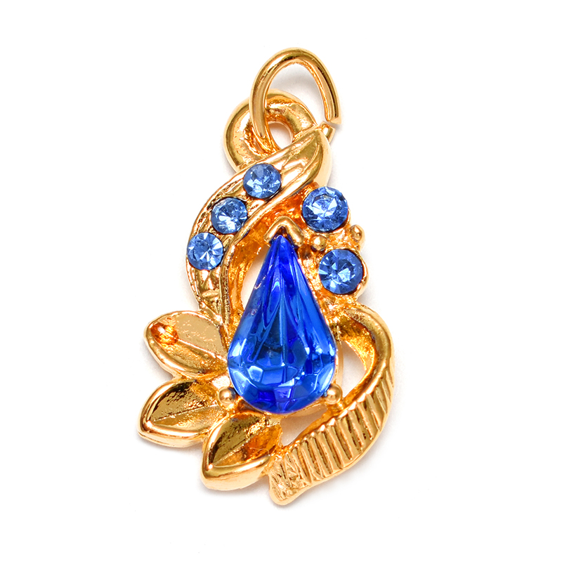 Raindrop Shape Crystal with Plant Pattern Pendant (Blue Color)
