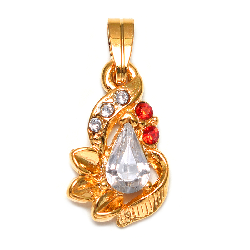 Raindrop Shape Crystal with Plant Pattern Pendant (White Color)