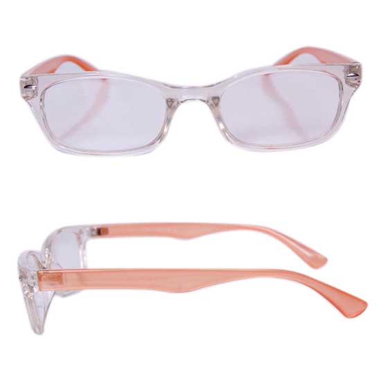 This displayed pair of reading glasses is designed in a more fashionable look. The frame is crafted with lightweight yet durable PC. The translucent colors bring the glasses a less rigid look.
