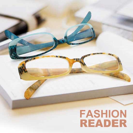 This pair of fashionable reading glasses features a full-rim design. The frame with delicate patterns is finely crafted in attractive colors for an eye-catching look. The reading glasses are suitable for people, who have close-reading problems.