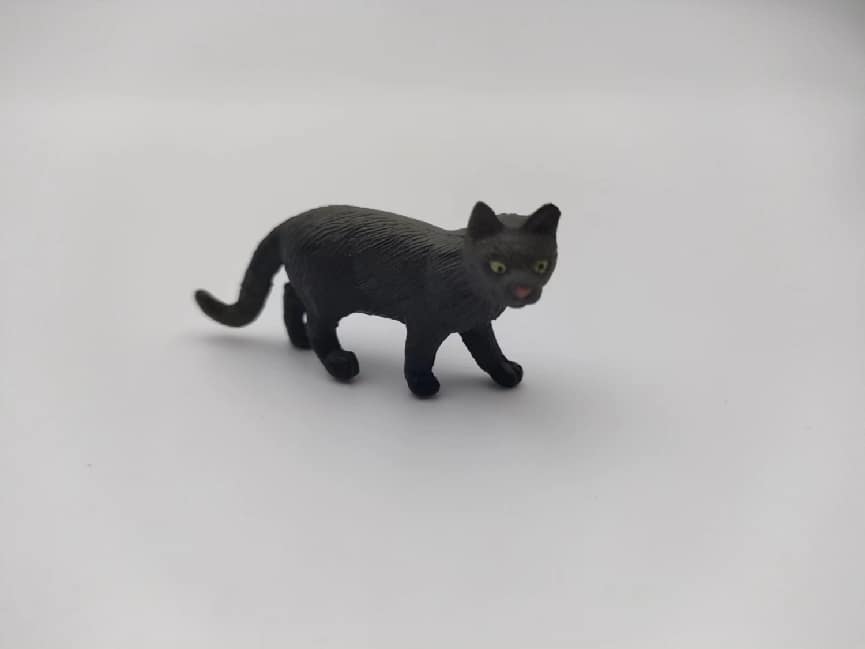 This exquisite, small and flexible PVC cat-shaped toy in cement grey color walks with a cricket-like gait. Its unique coat seems to be telling children that we can play role-playing games indoors or go on jungle adventures outdoors. It's really worth having.