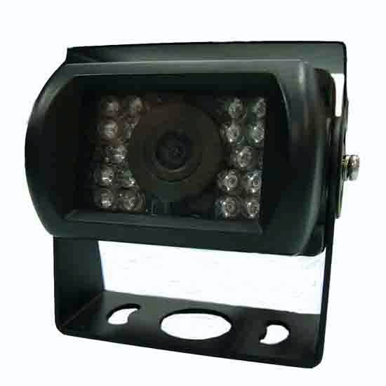 This rear view camera features a sturdy construction in a polished black color. It boasts multiple LED bulbs, which provide bright lighting at night or in dark areas. It is designed to assist drivers in parking with enhanced views.