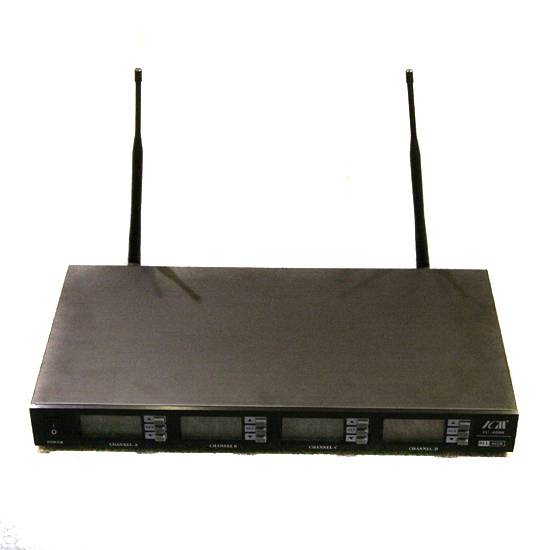 As shown is a receiver which supports carrier wave frequency range from UHF 790 - 814 MHz. This receiver is phase-locked loop controlled. The carrier wave stability of this receiver is 10 PPM. With a LCD display, this receiver shows functions-in-use and other information clearly.