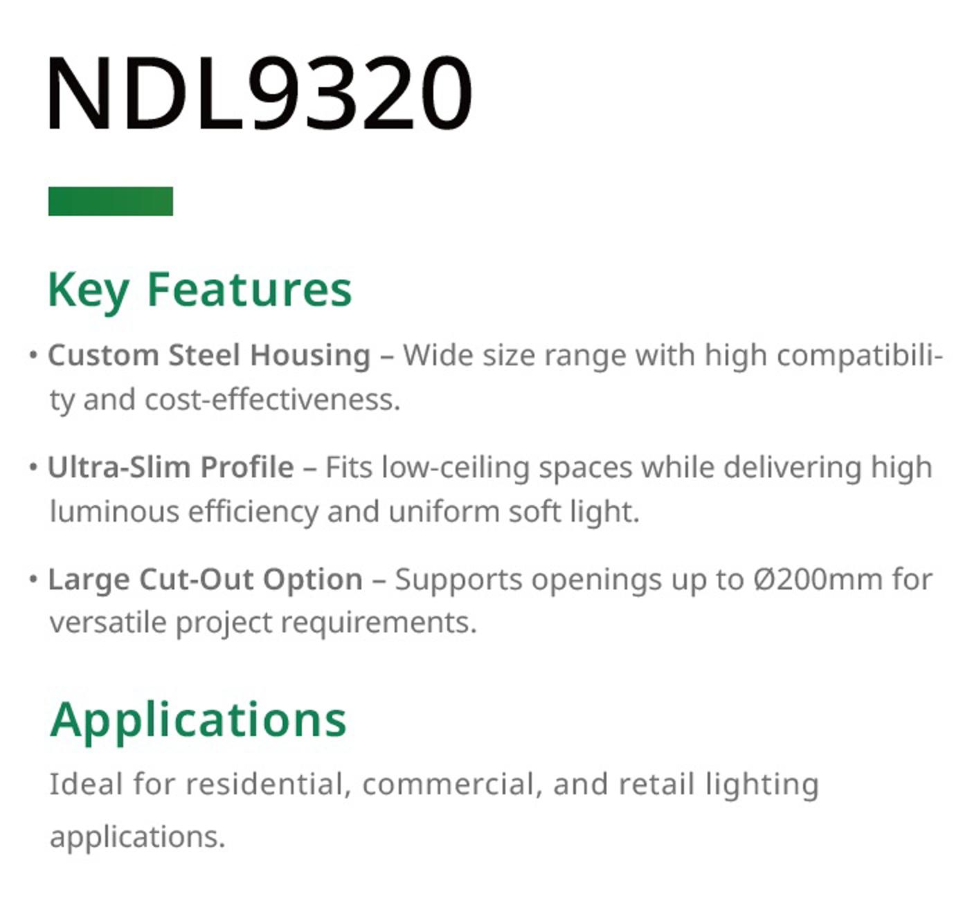 Recessed Downlight, Ultra Slim, Large Cut-out, CE, NVC, NDL9320