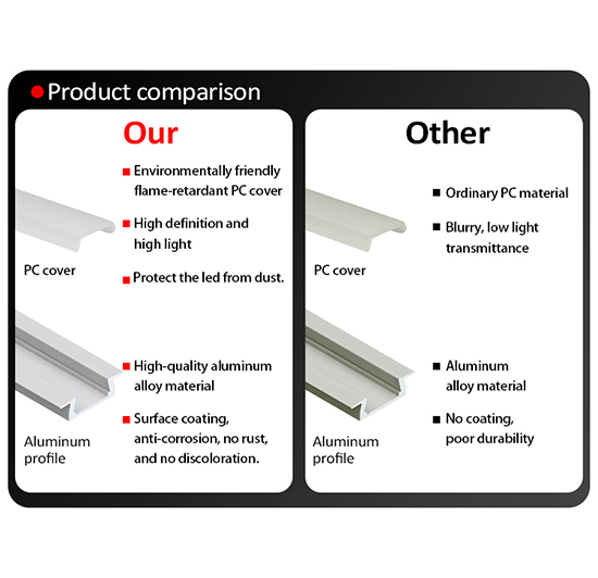 1. Aluminum profile: It's made of high quality aluminum alloy 6063-T5 material, surface coating, anti-corrosion, no rust and no discoloration.