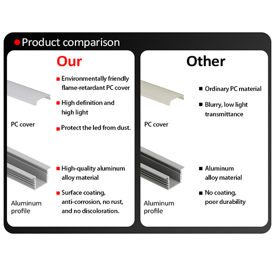 1. Aluminum profile: It's made of high quality aluminum alloy 6063-T5 material, surface coating, anti-corrosion, no rust and no discoloration.