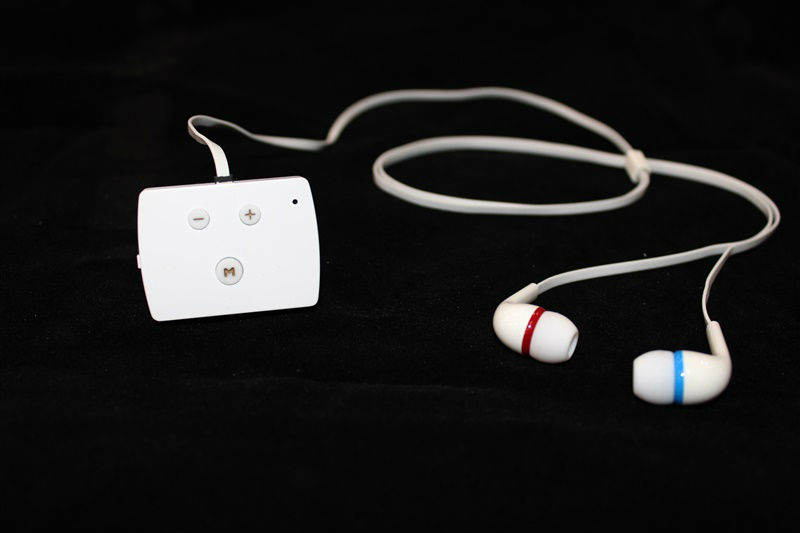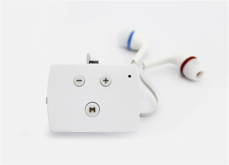This Bluetooth hearing aid comes in a pocket design and is powered with a rechargeable battery. It comes with a “+”, a “-” and a “M” button at the back and is easy to control. The earpieces are labeled with red and blue for easy identification.