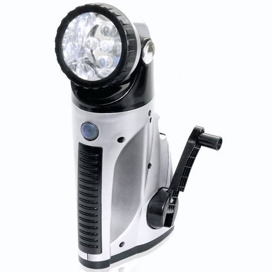This rechargeable LED flashlight gets power from general hand shaking. It complies with the RoHS and CE/GS safety standards. This LED flashlight is an essential tool for camping and hiking.