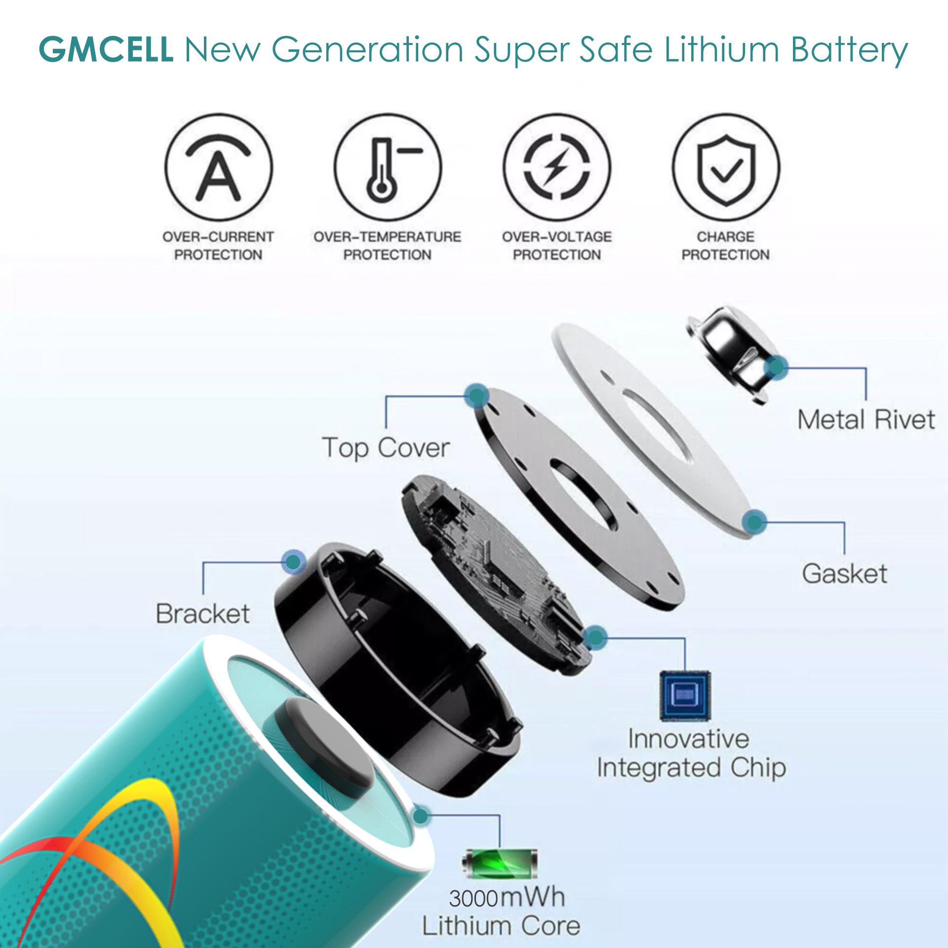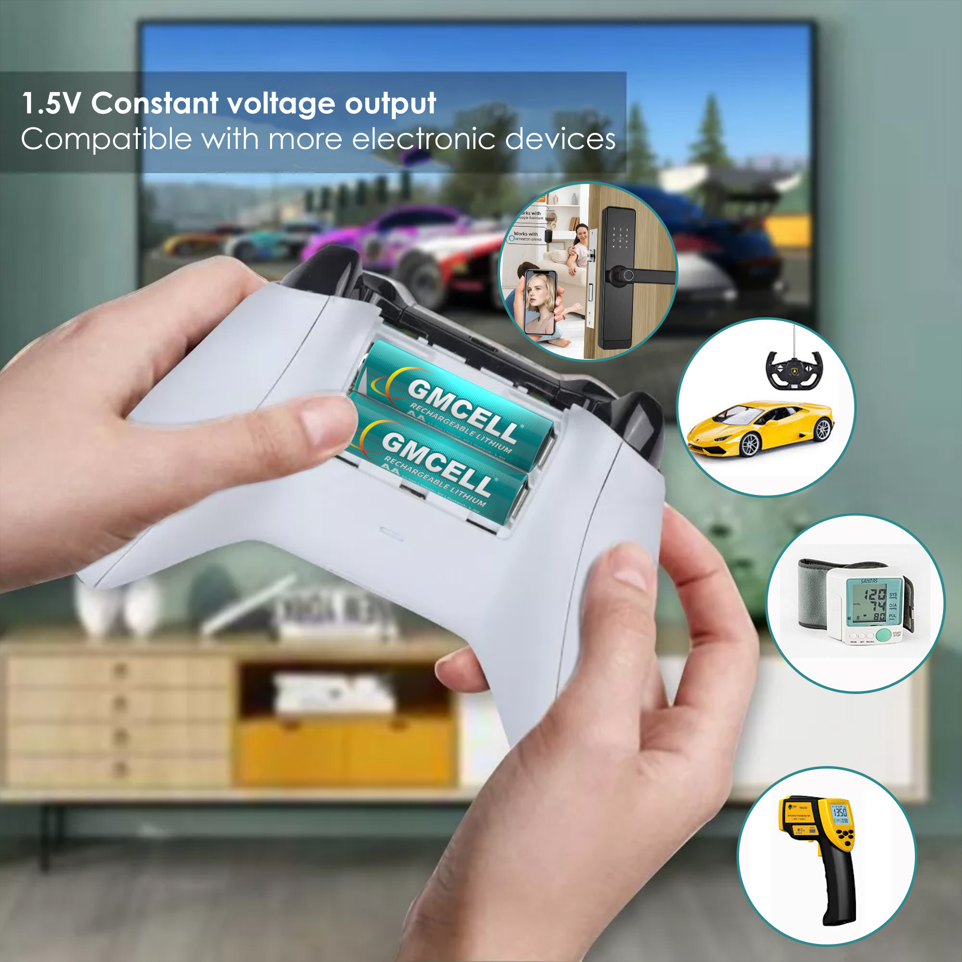 GMCELL Rechargeable AA Lithium Battery with 8 Slots Smart Charger Product Features: