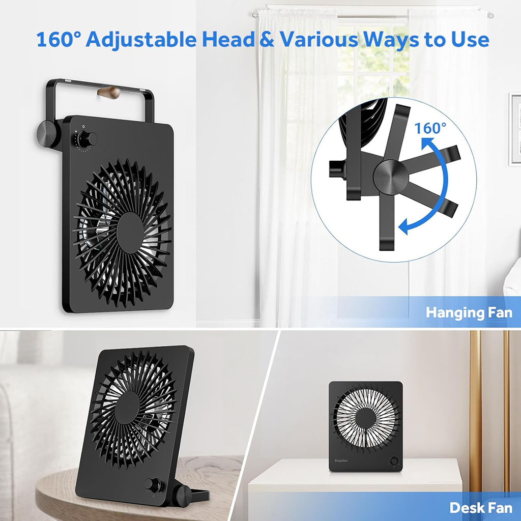 Rechargeable Portable Handheld Fan with Foldable Hanging Stand includes the following features :