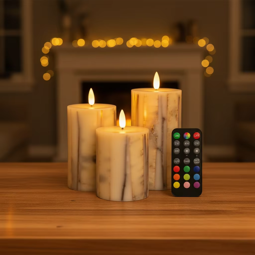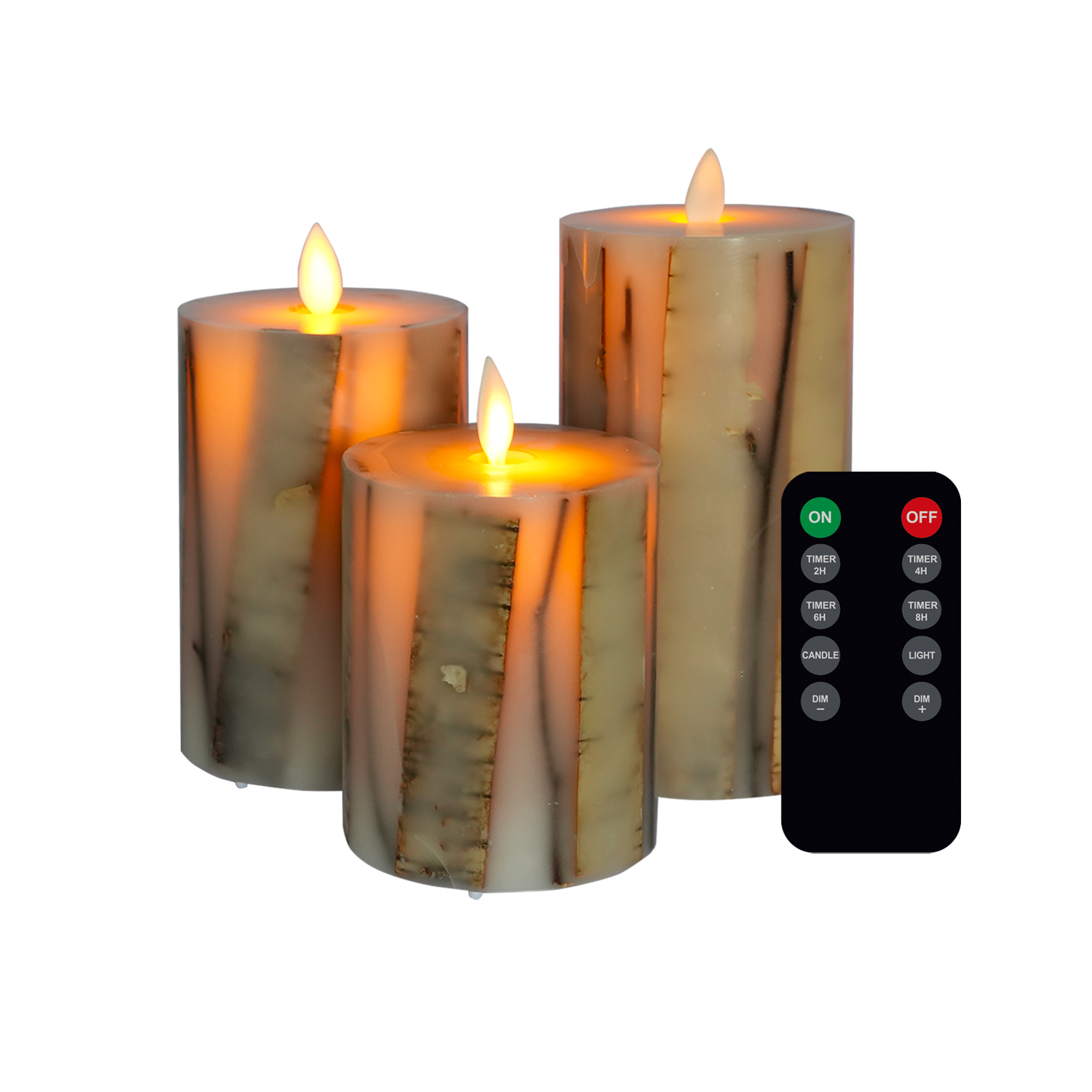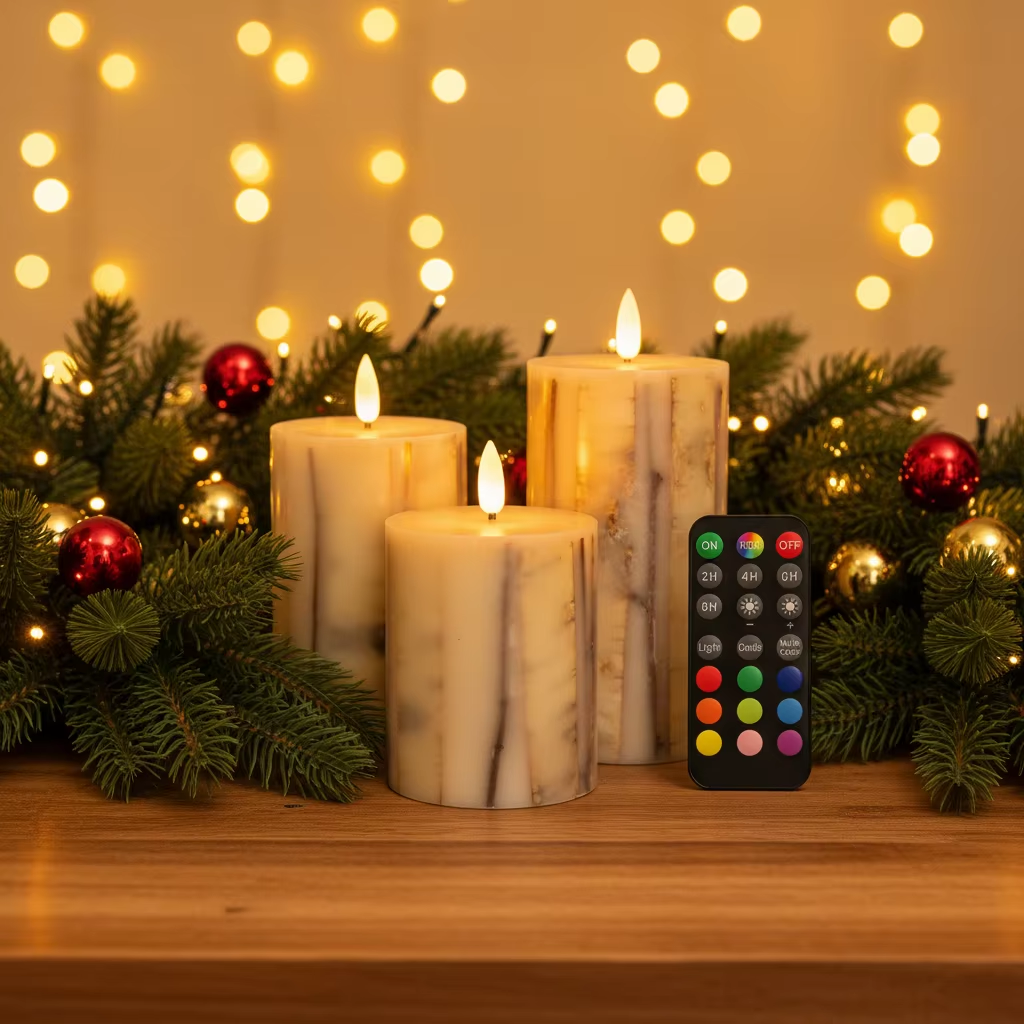 Rechargeable RGB Flameless LED Bark Candle Set with Remote Control Christmas Decoration Lamp with Light Timer Dimmer for Holiday