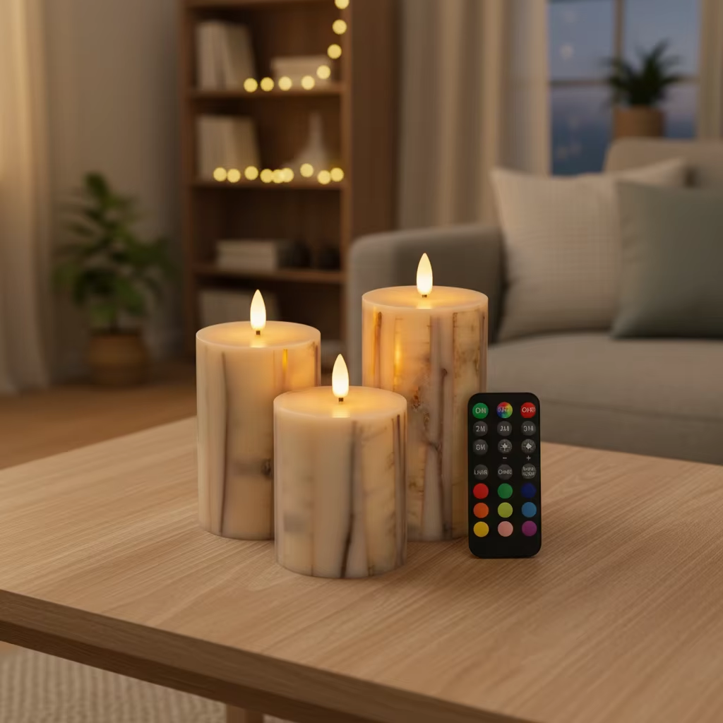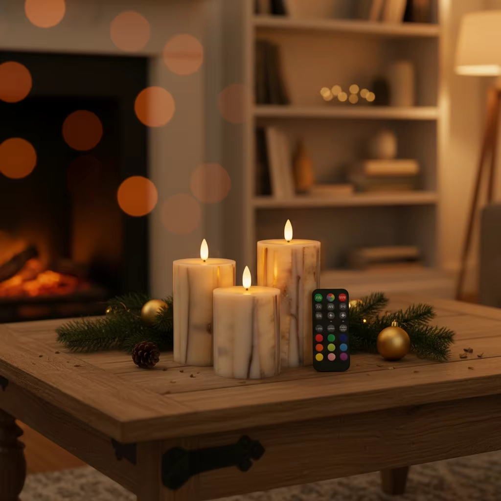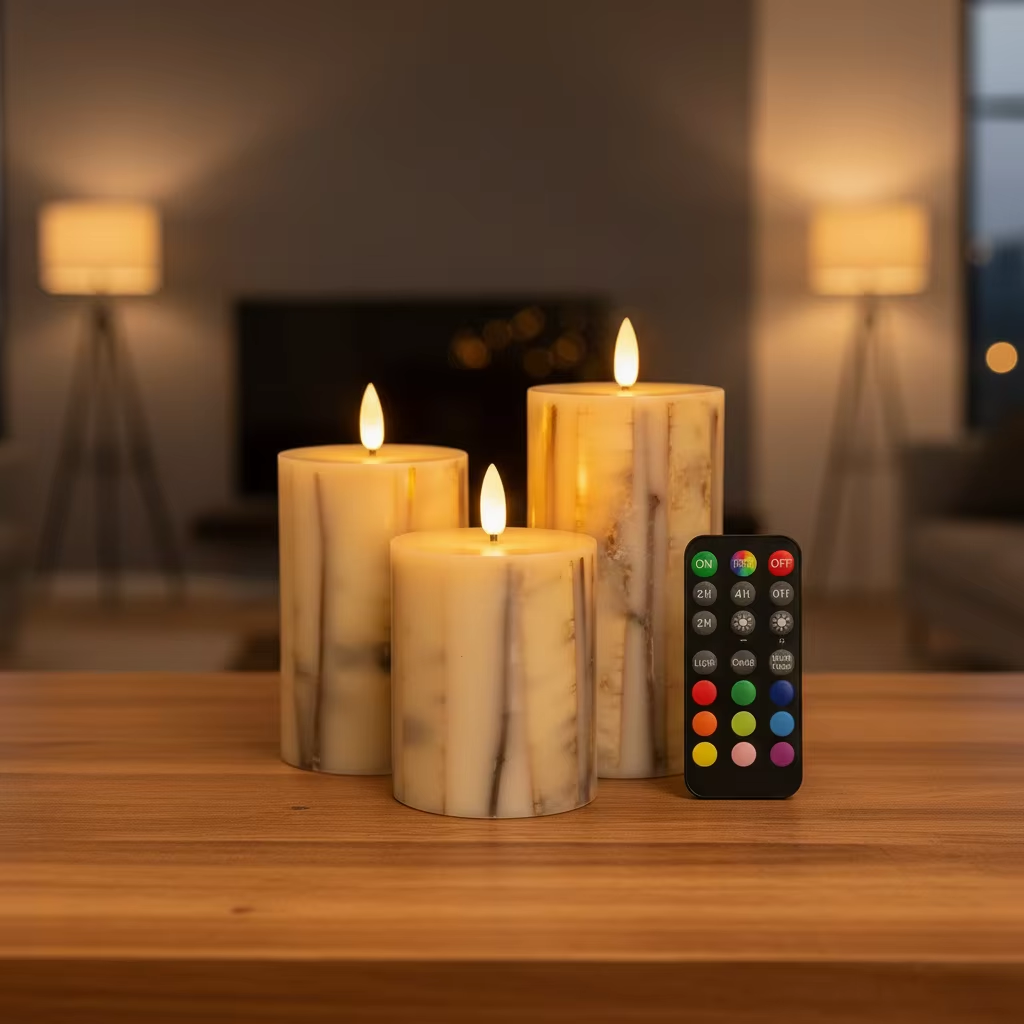 Rechargeable RGB Flameless LED Bark Candle Set with Remote Control Christmas Decoration Lamp with Light Timer Dimmer for Holiday