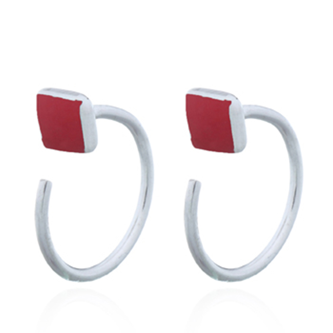 Reconstituted Stone Red Square 925 Silver Huggie Drop Earrings