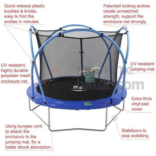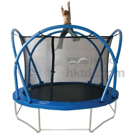 Featured here is a 3.05m recreational trampoline with foldable enclosure net and weather cover. This trampoline boasts an ingenious design arches form an integrated framework and has unmatched structural strength to support the enclosure net. It stands out from traditional trampolines and has a folding feature to prevent unauthorized and unsupervised use.